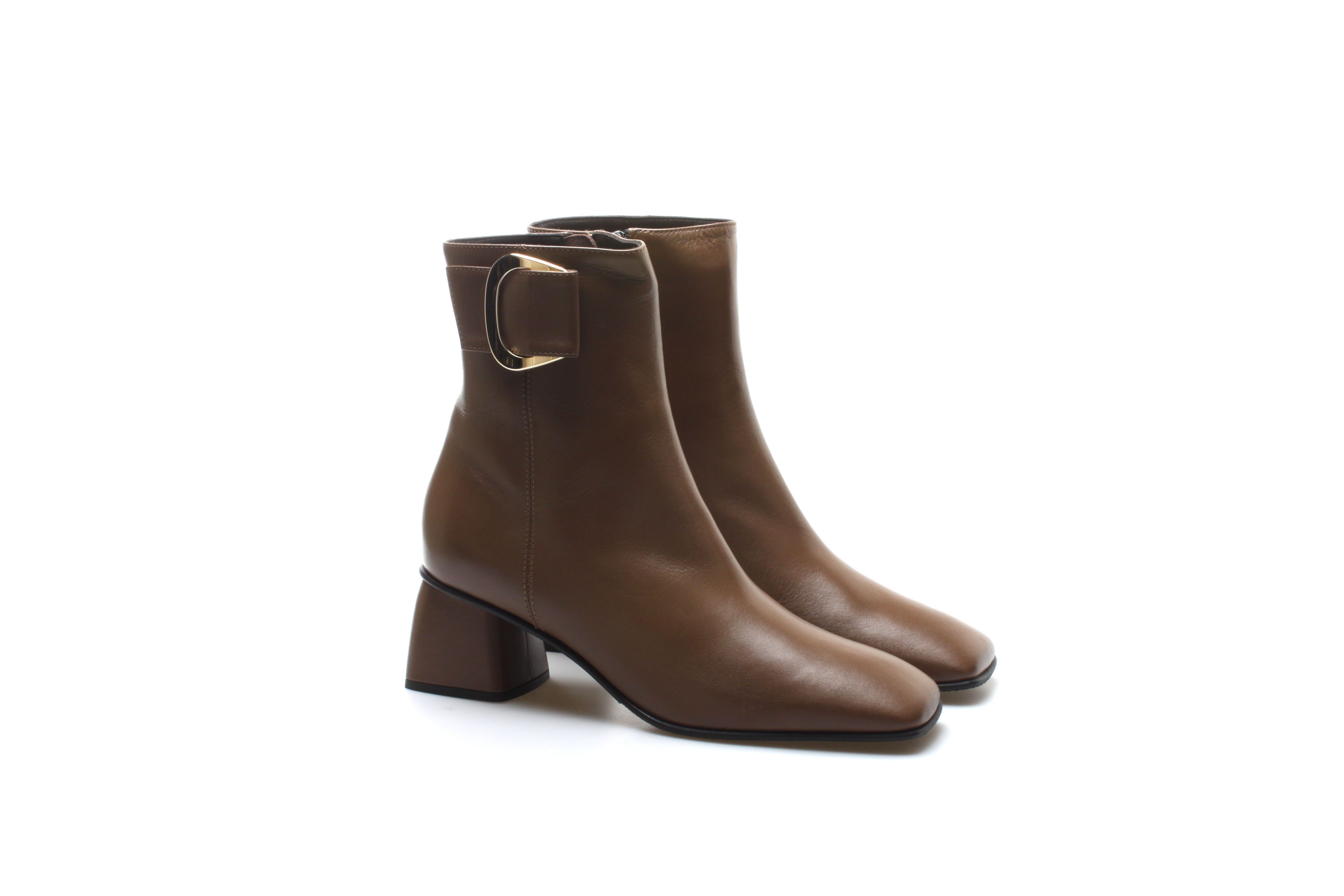 豪麟名鞋奥莱进口迪嘉女装牛皮革简约短靴Z25569N咖啡色 原价4660元
