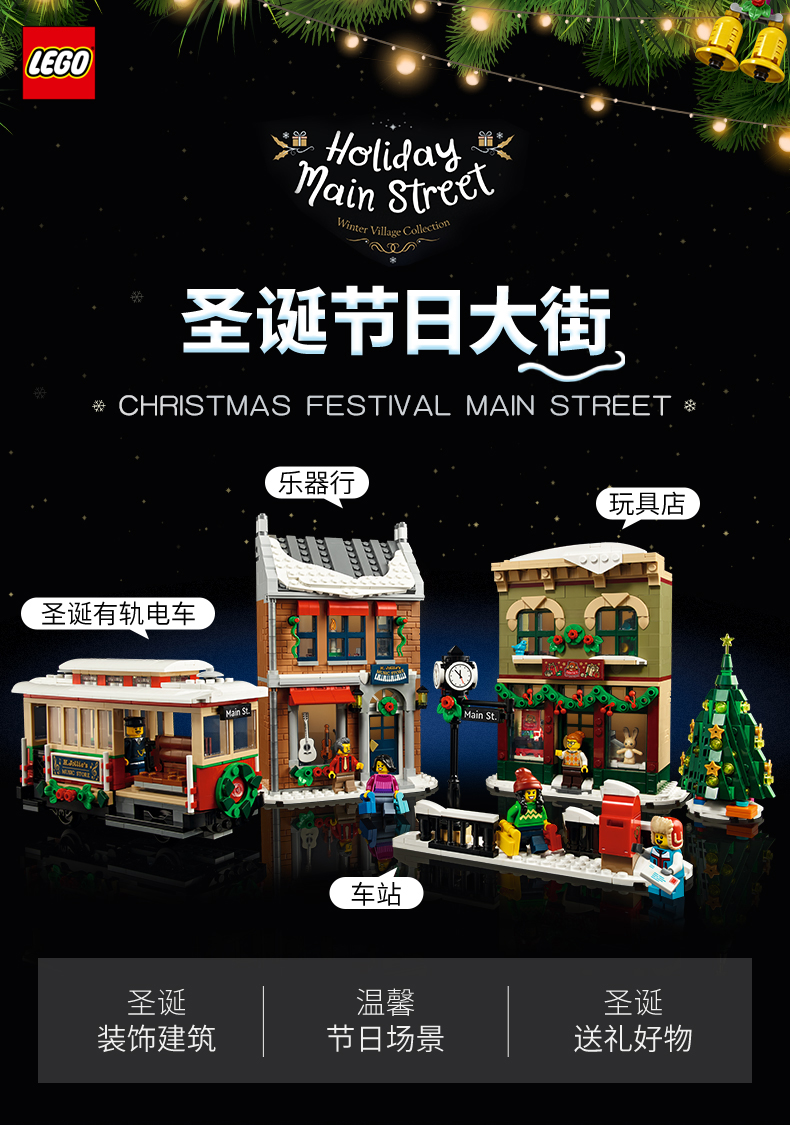 乐高创意系列10308圣诞小镇圣诞节日大街圣诞礼物积木玩具