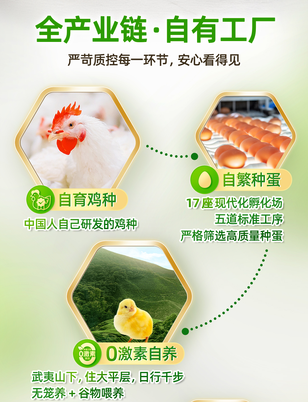 圣农年孵化5亿羽,是全球唯一的集种鸡养殖、种蛋孵化、饲料加工、肉鸡饲养、肉鸡加工、食品深加工、产品销售、快餐连锁于一体的全封闭白羽肉鸡全产业链企业。