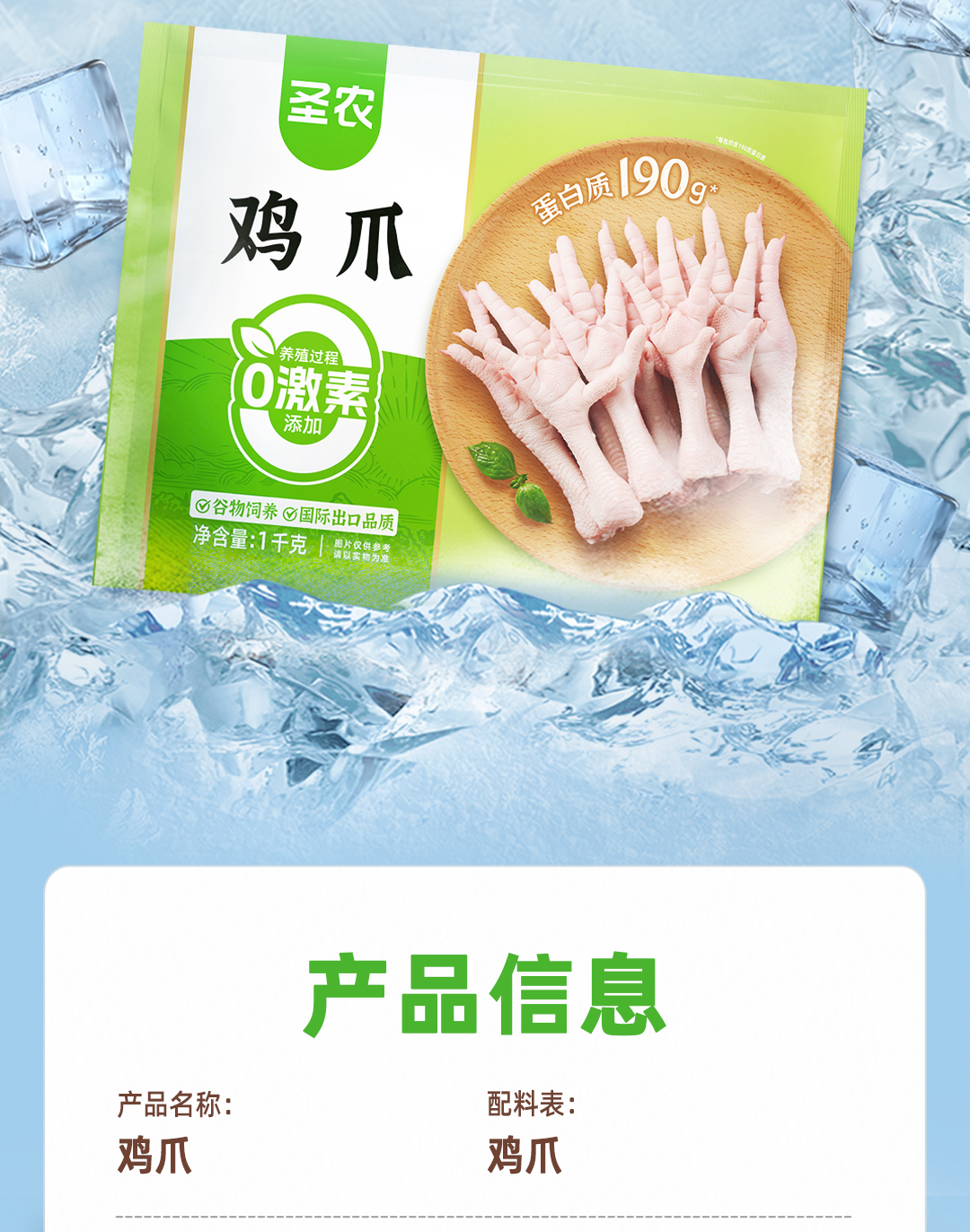 圣冷冻长鸡爪新鲜速冻高品质鸡肉带棍凤爪*4斤