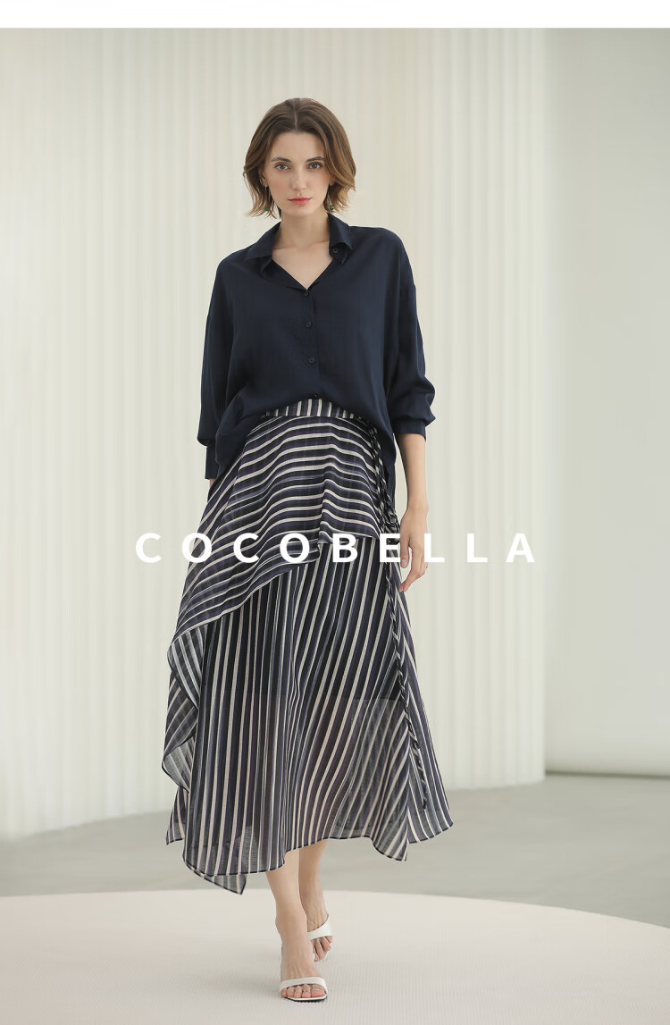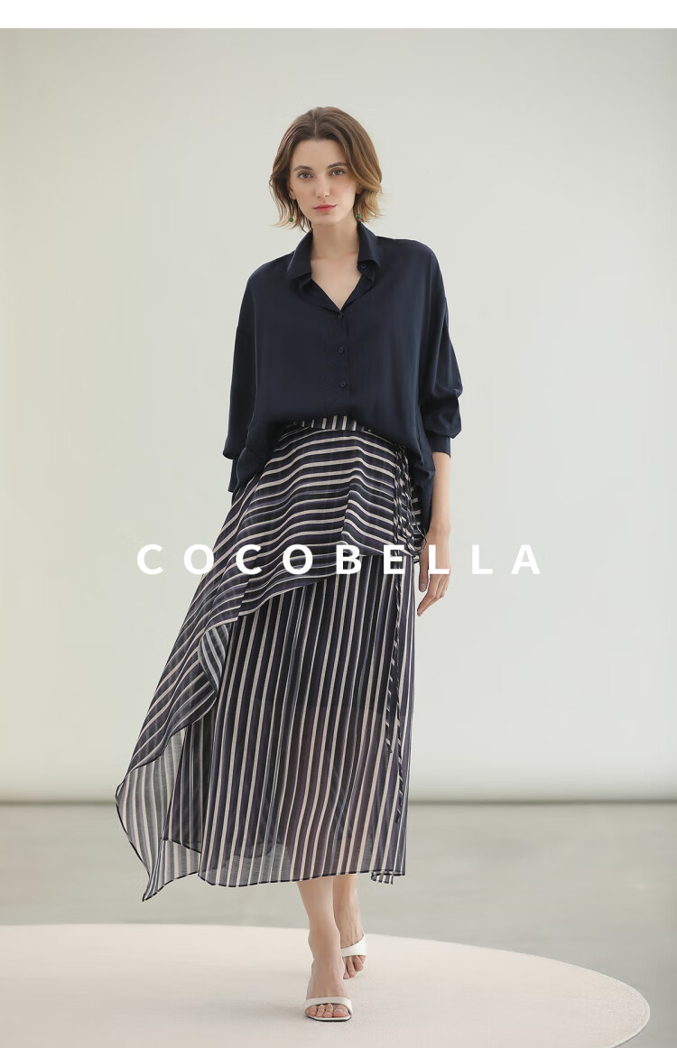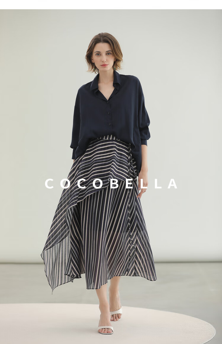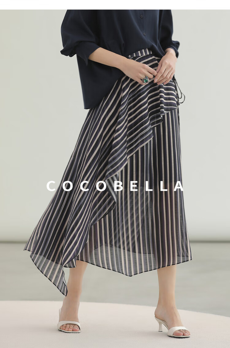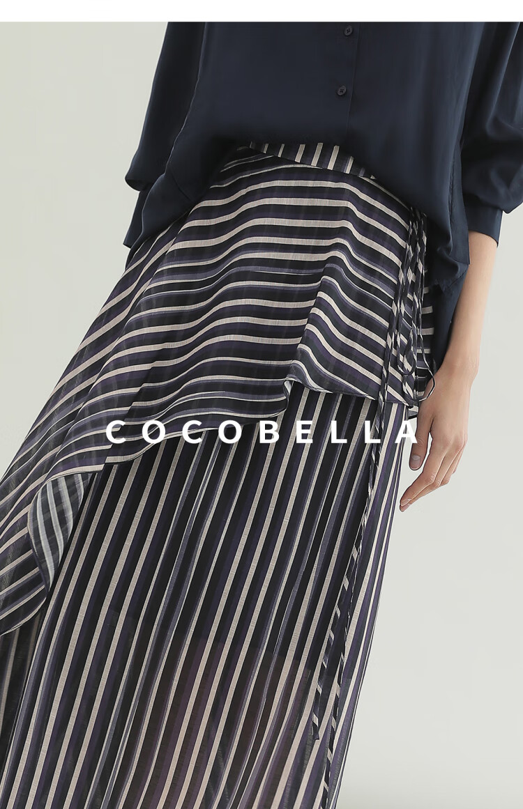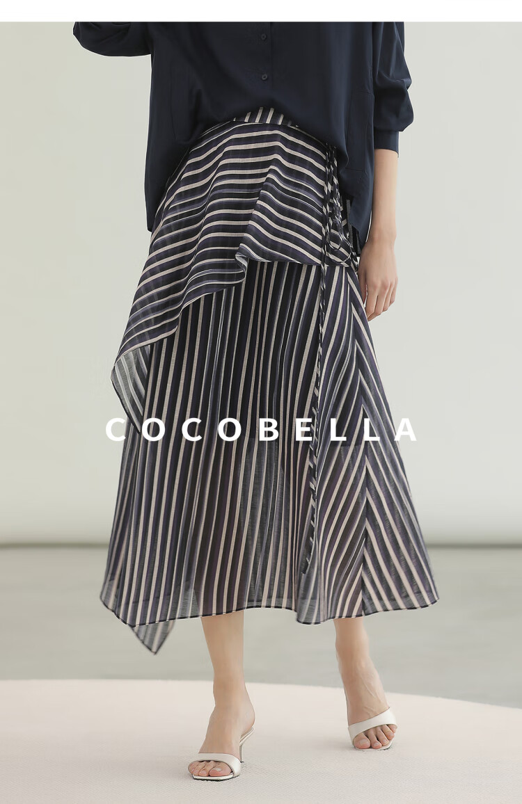 COCOBELLA[醋酸]设计感不规则条纹印花莱赛尔半身裙HS3135