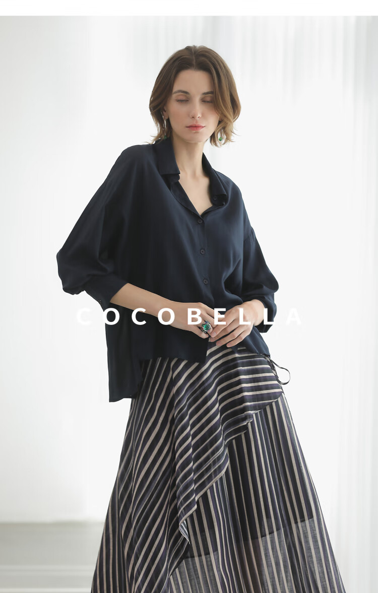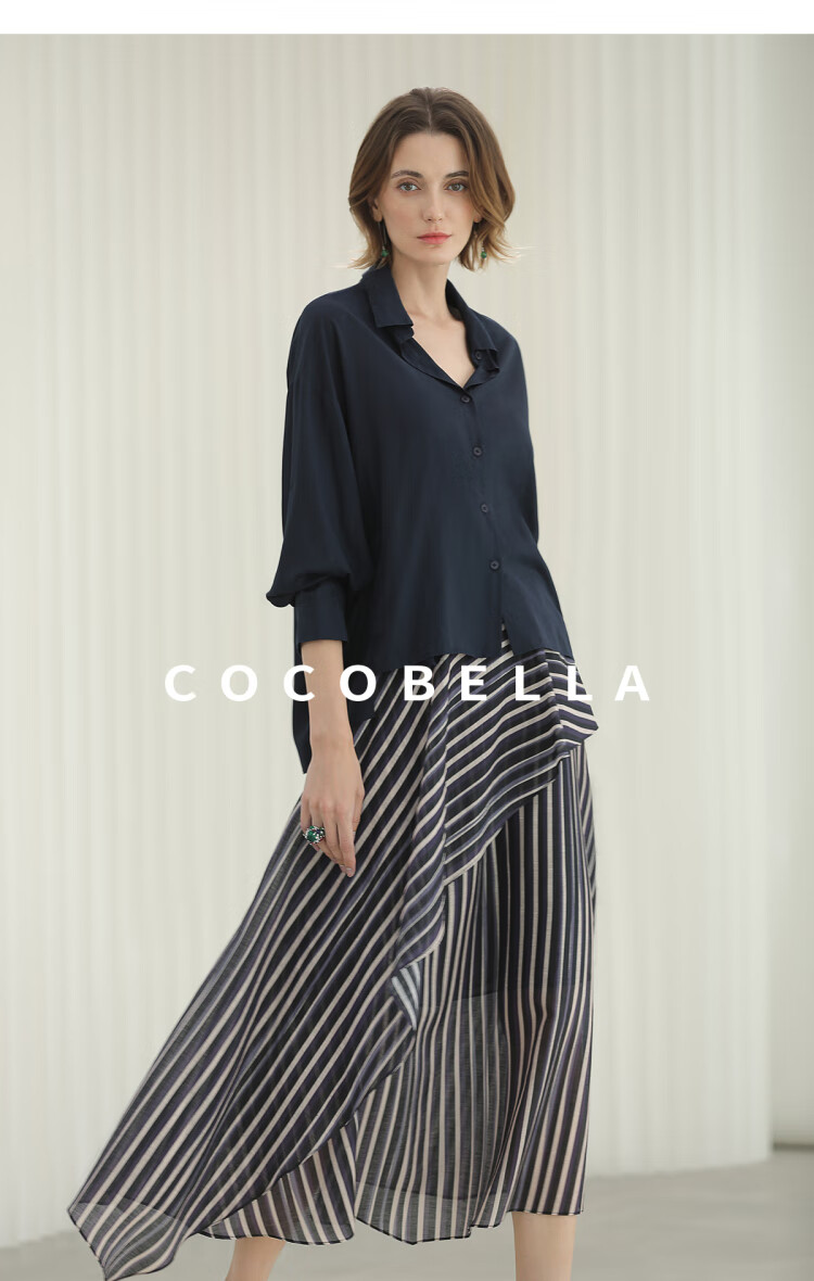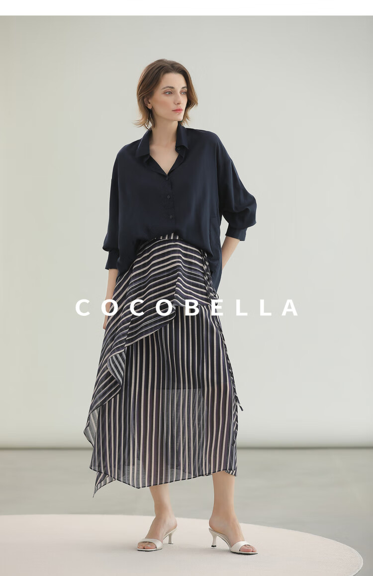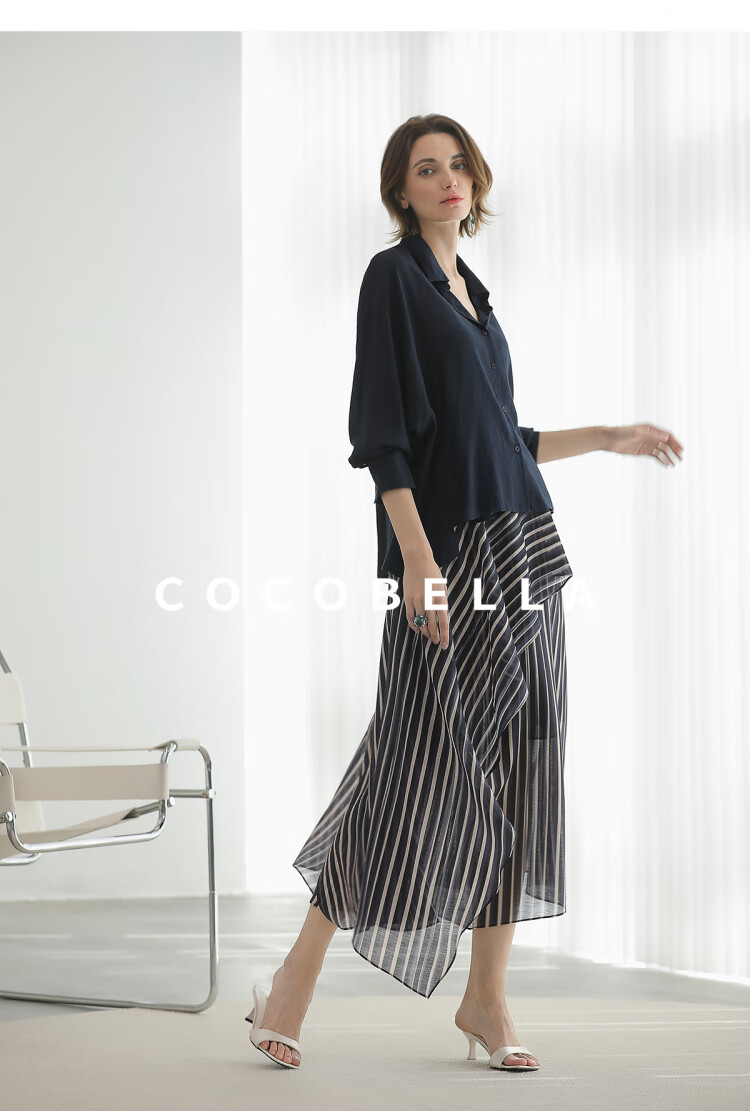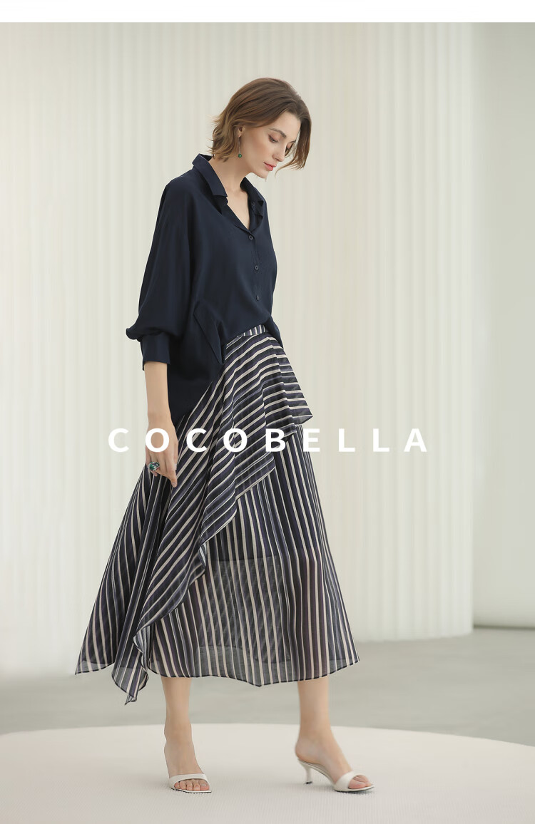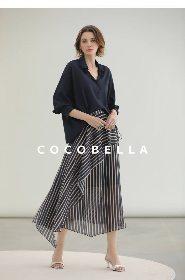 COCOBELLA[醋酸]设计感不规则条纹印花莱赛尔半身裙HS3135