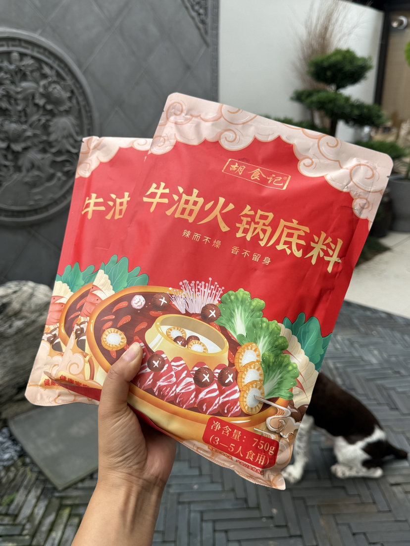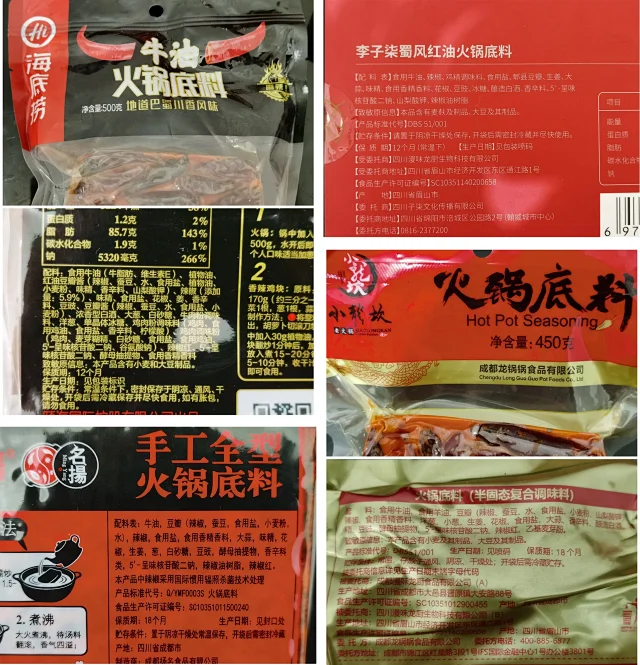 【配料表】食用牛油、食用植物油、辣椒、豆瓣、豆豉、大葱、生姜、花椒、冰糖、白酒、大蒜、鸡精调味料、谷氨酸钠、食用香辛料