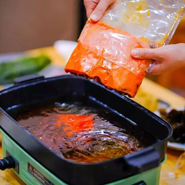 用本身植物香料萃取香味,使用纯牛油、辣椒、花椒、豆瓣等香辛料,慢火熬制而成。牛油就是牛油的味道,辣椒就是辣椒的味道,味道纯正,辣而不燥!重点是,一次性用料,好吃,安全,健康。