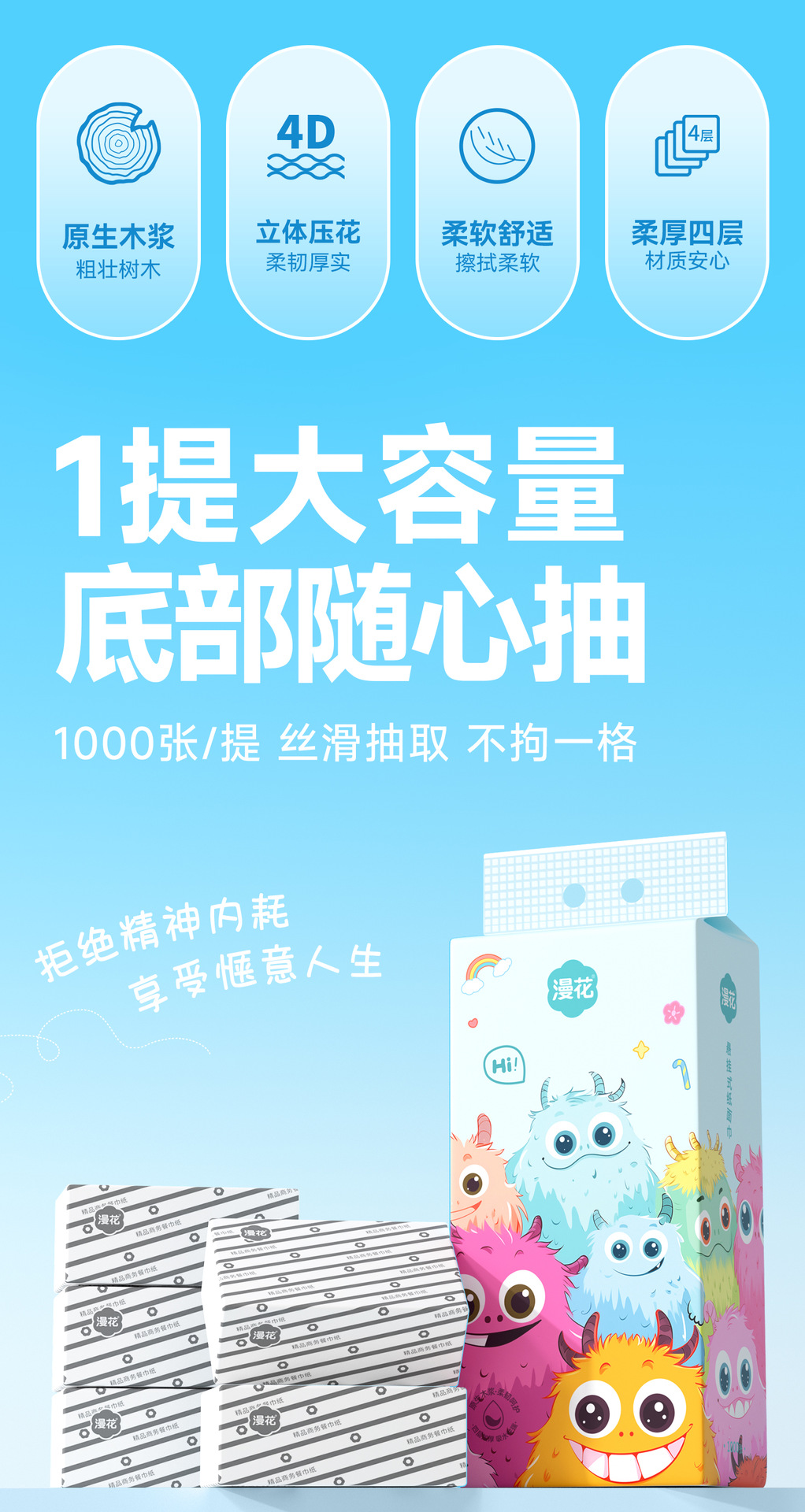 「到手仅4.9一提!悬挂设计」漫花纸巾抽纸悬挂式面巾纸11提整箱 餐巾纸居家日用清洁卫生纸实惠装