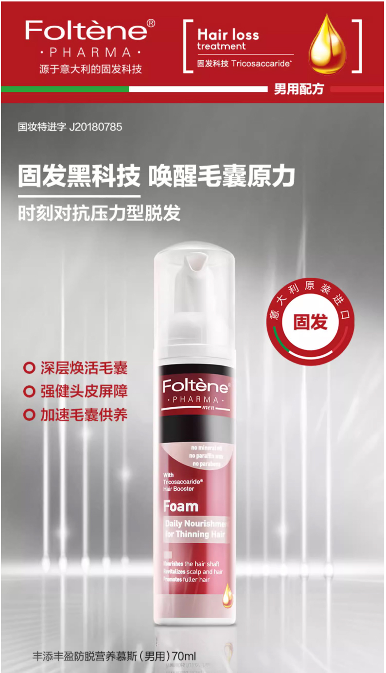 今天给大家推荐一款使用方便、防脱效果显著的产品——意大利Foltène(丰添)的防脱慕斯营养液。