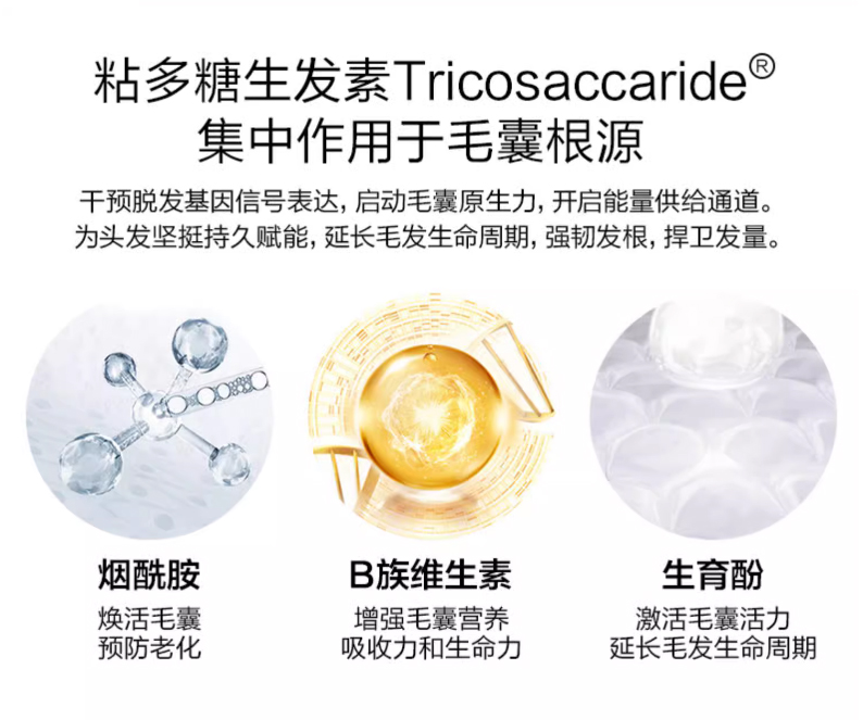 这种物质,也能强效激活毛囊里面的“多醣生长素”,快速防止脱发,适合各种类型的男性脱发。