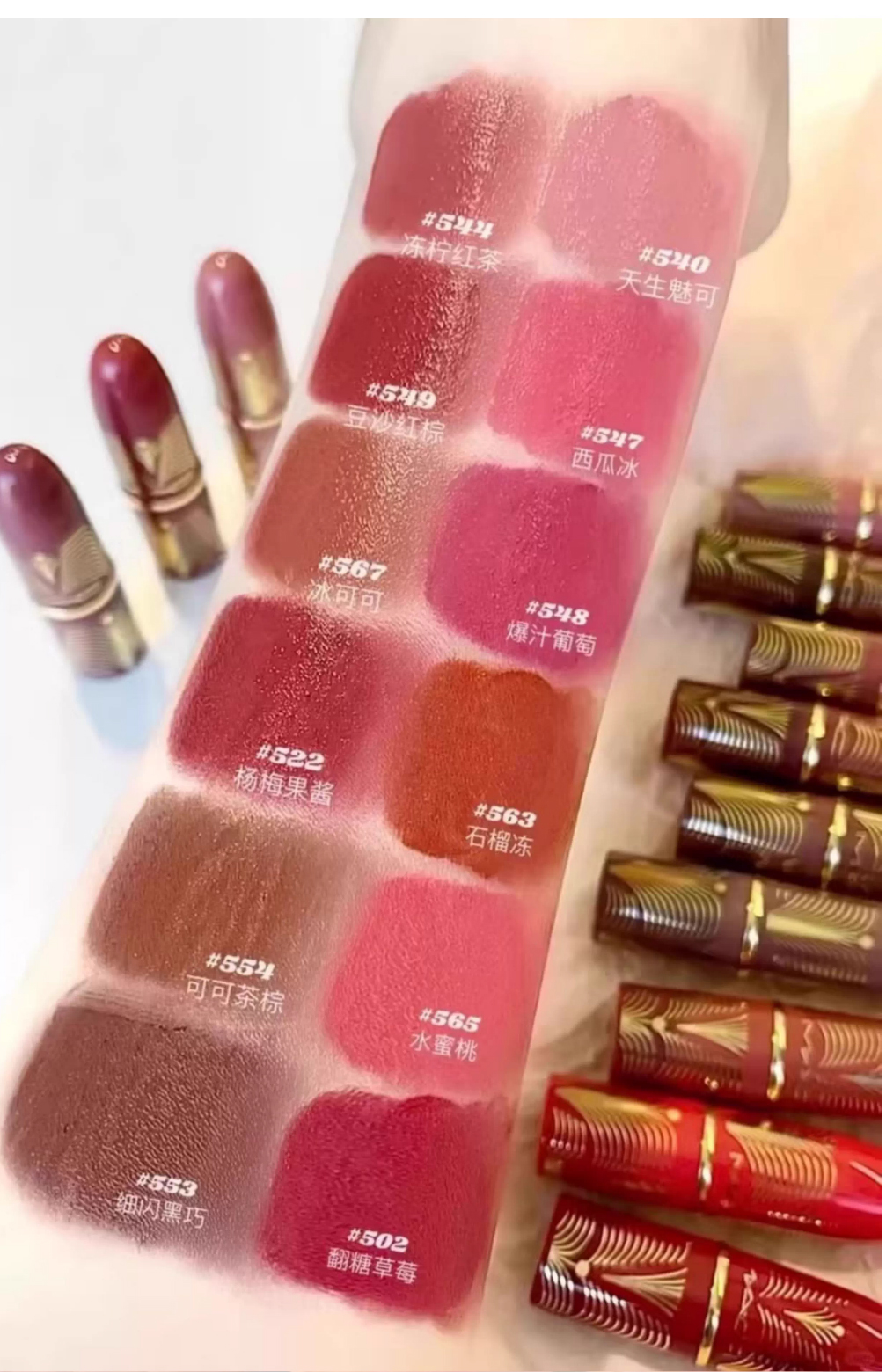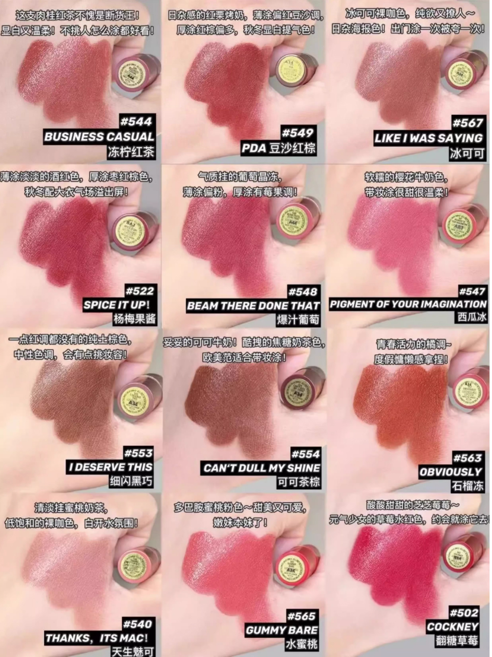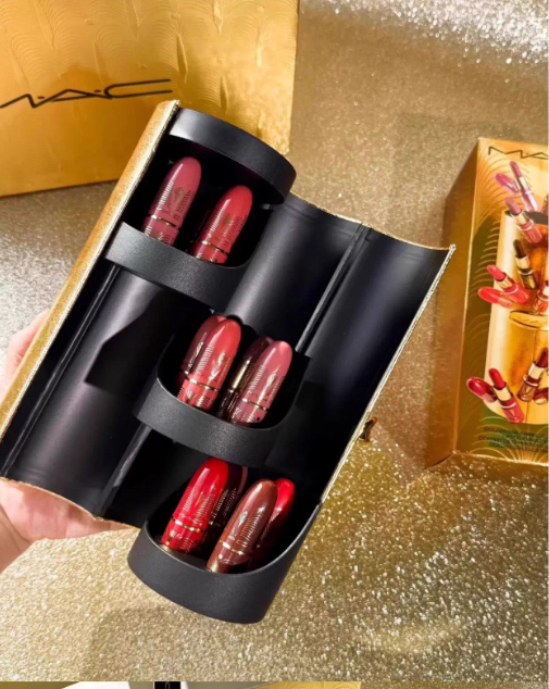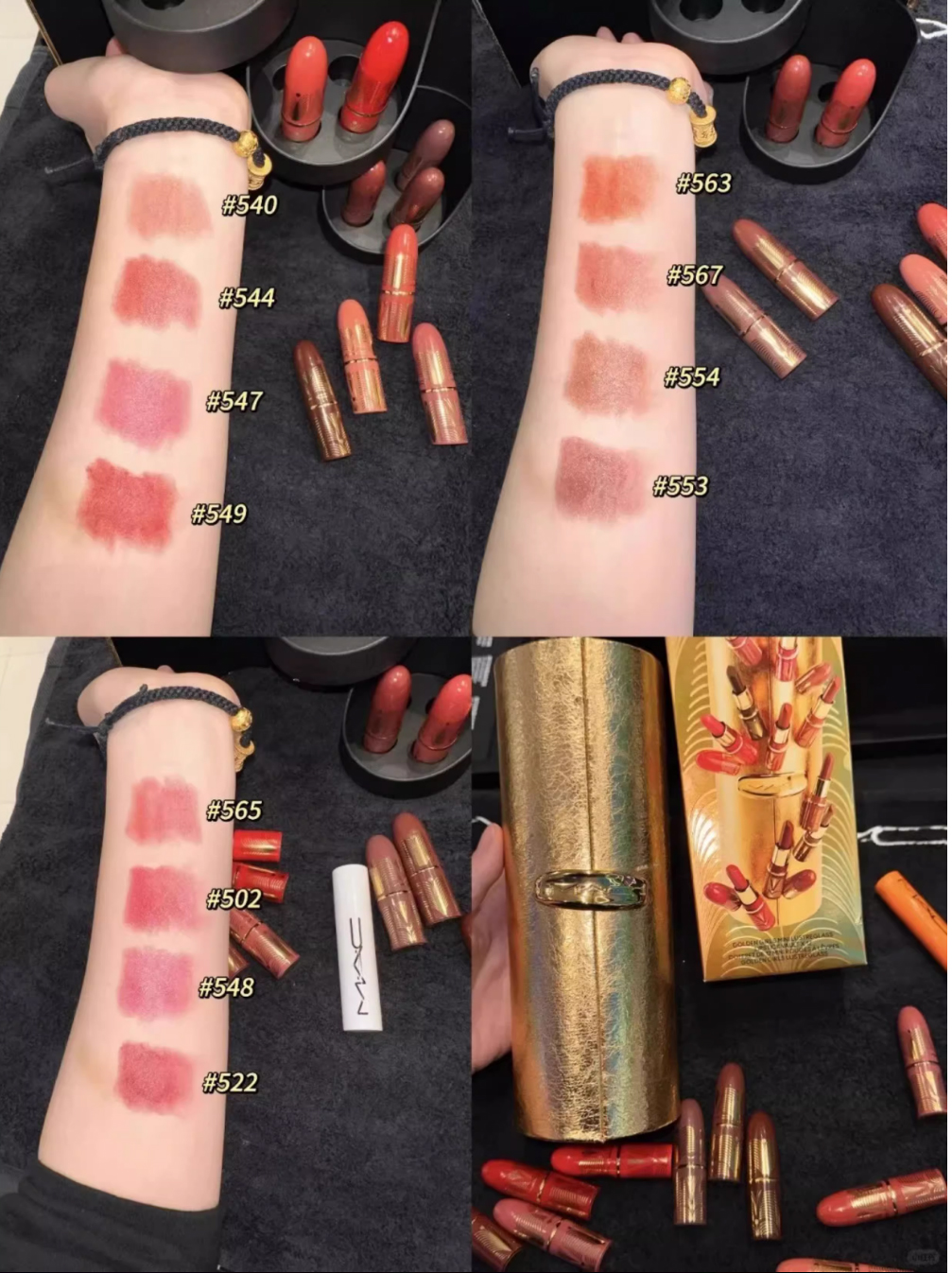 【品名】 MAC金色限量迷你口红套组 1.5克 #502翻糖草莓 #522杨梅果酱 #540天生魅可 #547西瓜冰 #548爆汁葡萄 #549豆沙红棕 #553细闪黑巧 554#可可茶棕 #563石榴冰 #565水蜜桃