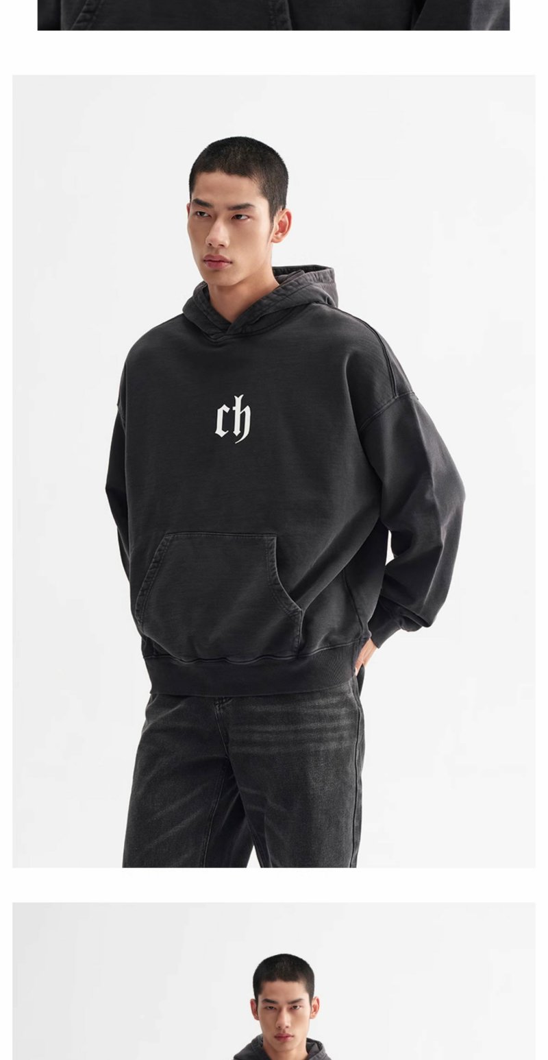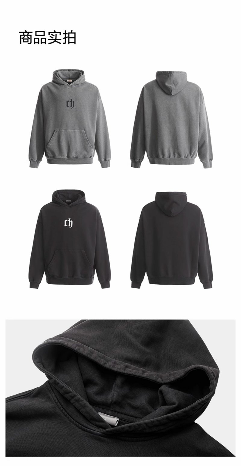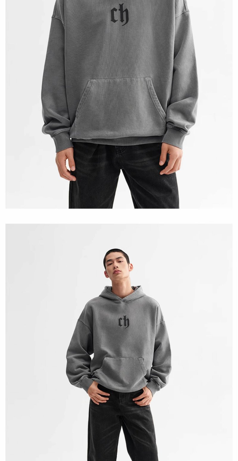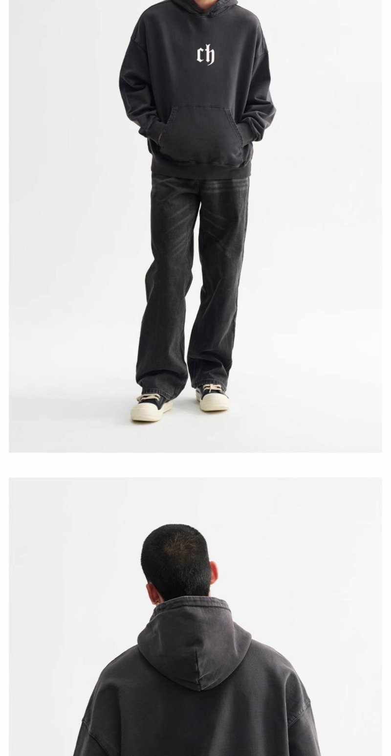 CHINISM赤尘 水洗黑重磅字母印花连帽卫衣男冬季新款美式做旧帽衫