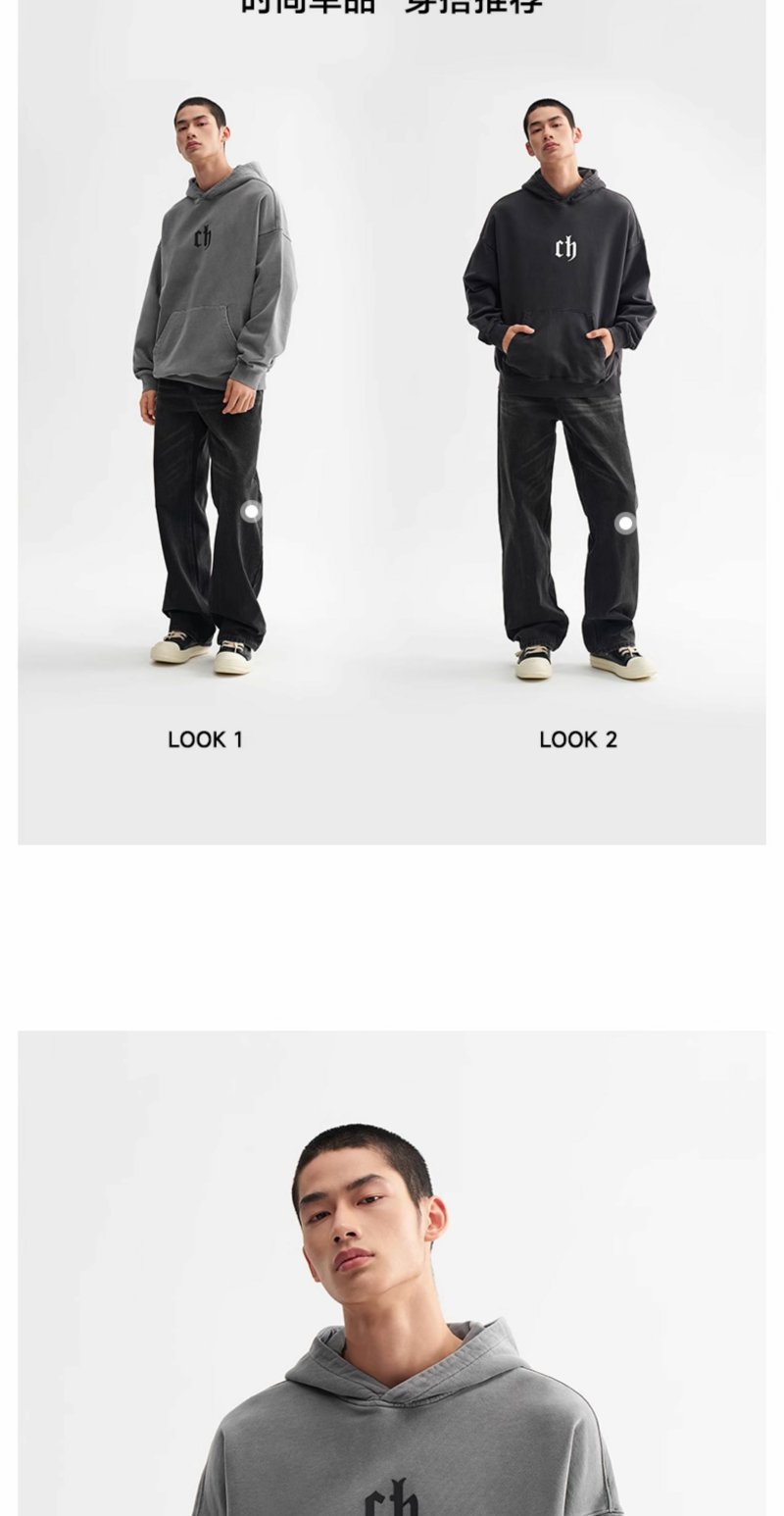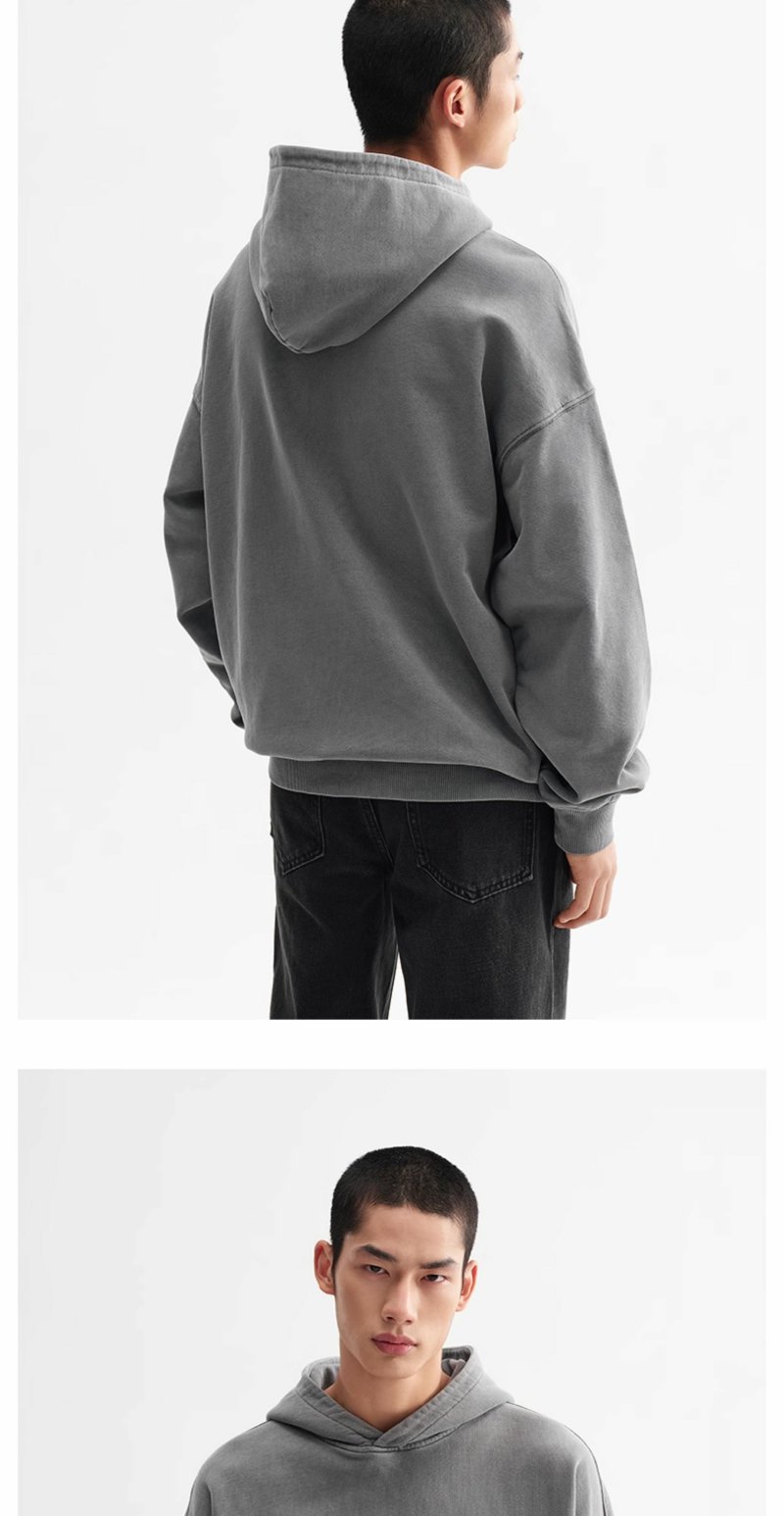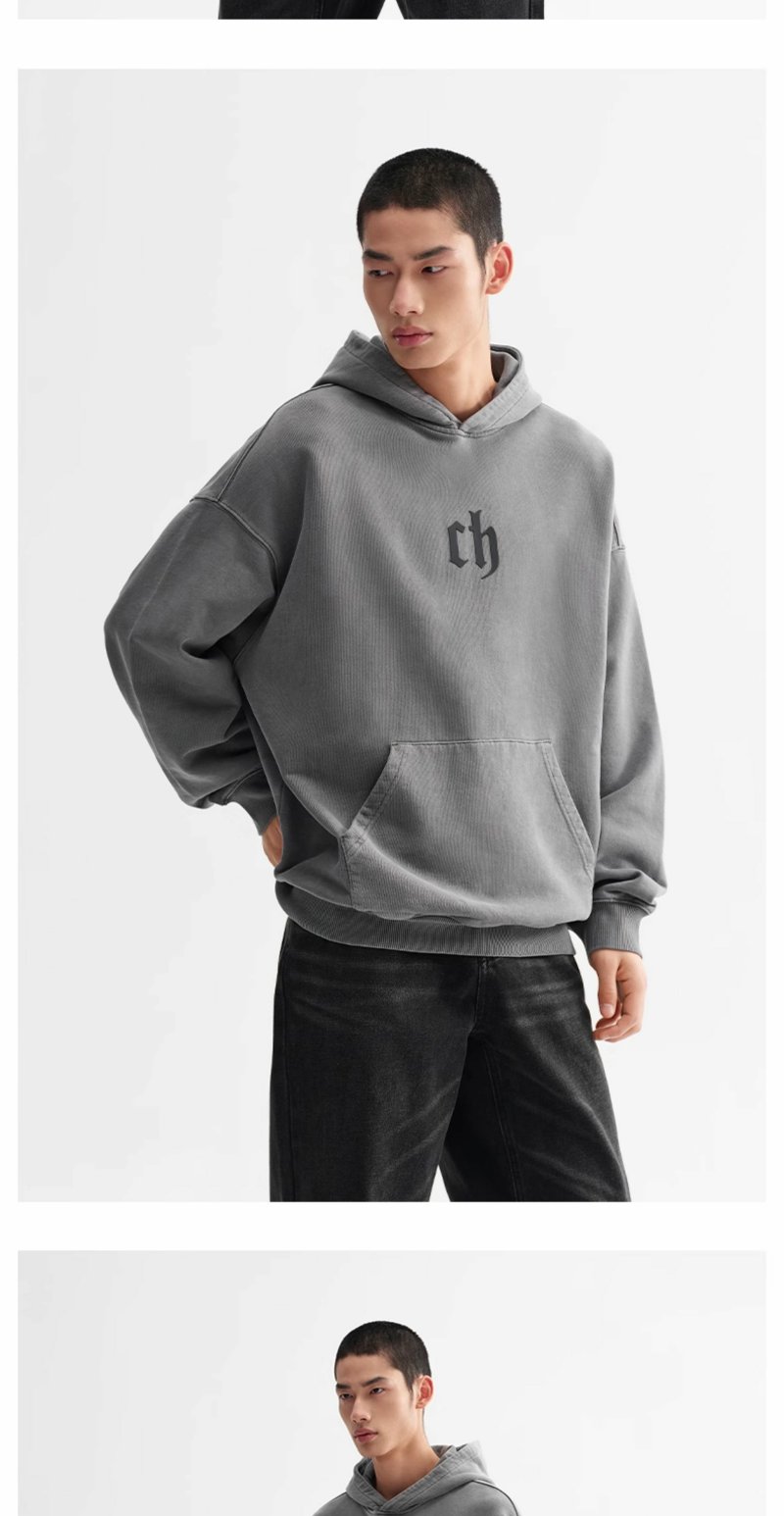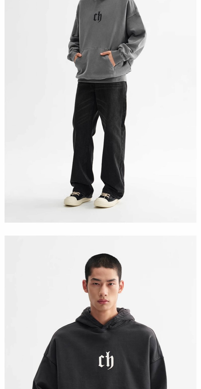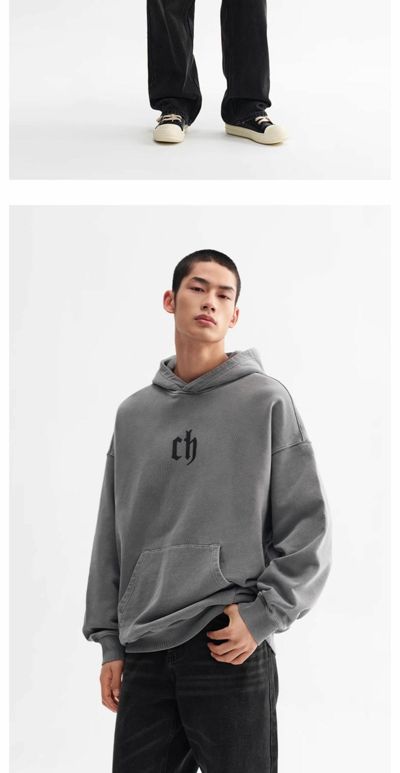 CHINISM赤尘 水洗黑重磅字母印花连帽卫衣男冬季新款美式做旧帽衫