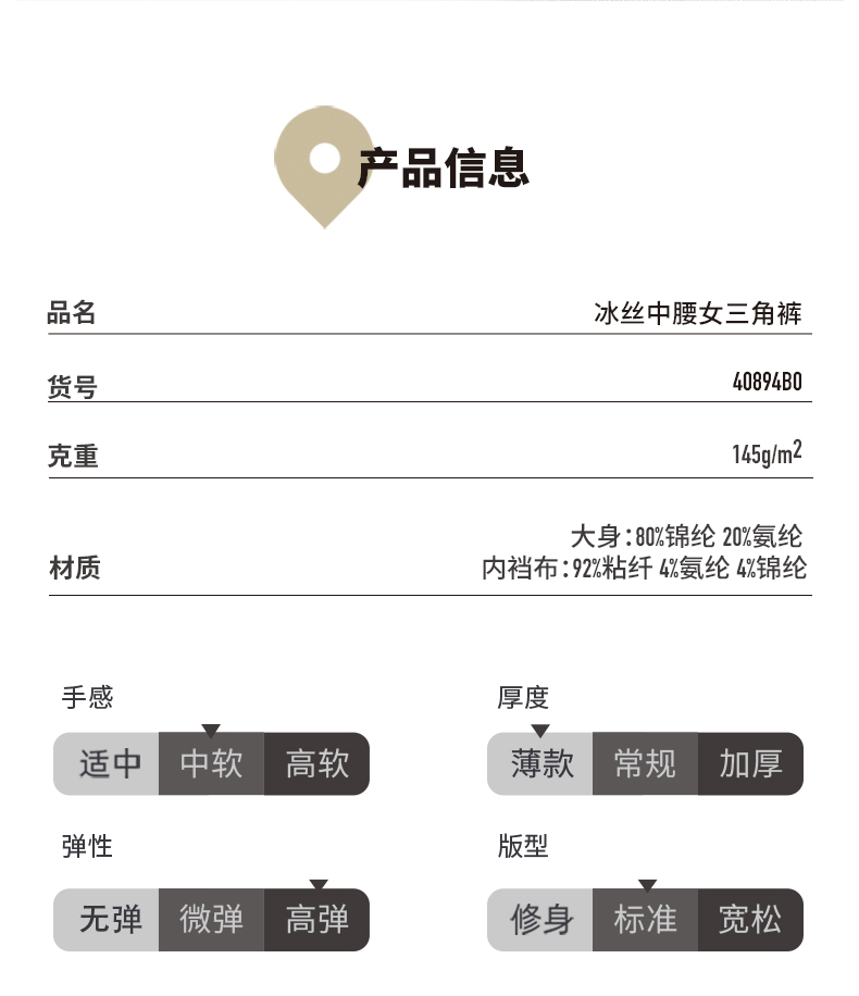 Threegun三枪 【冰丝】中腰女士三角内裤(1条装)-40894B011