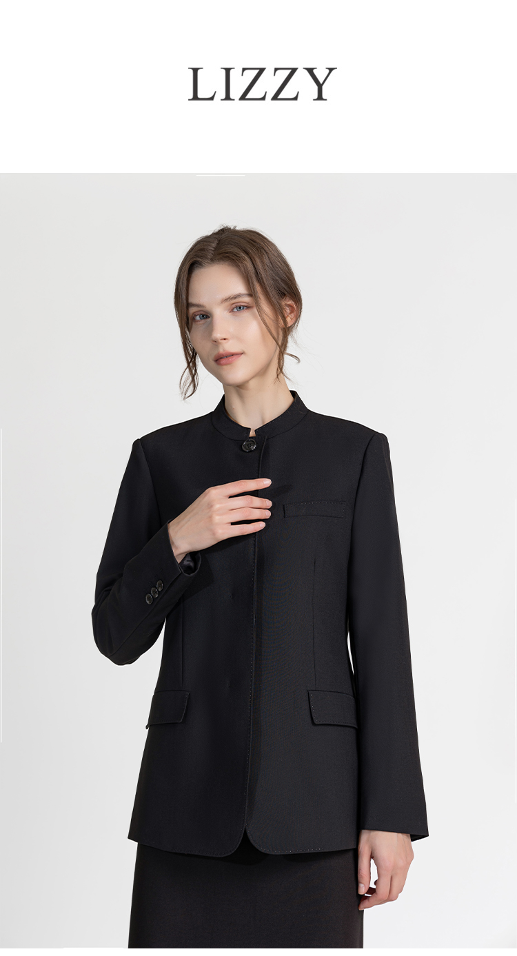 LIZZY早秋知性气质优雅干练名媛气场商务立领西装外套8147
