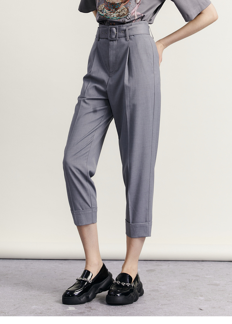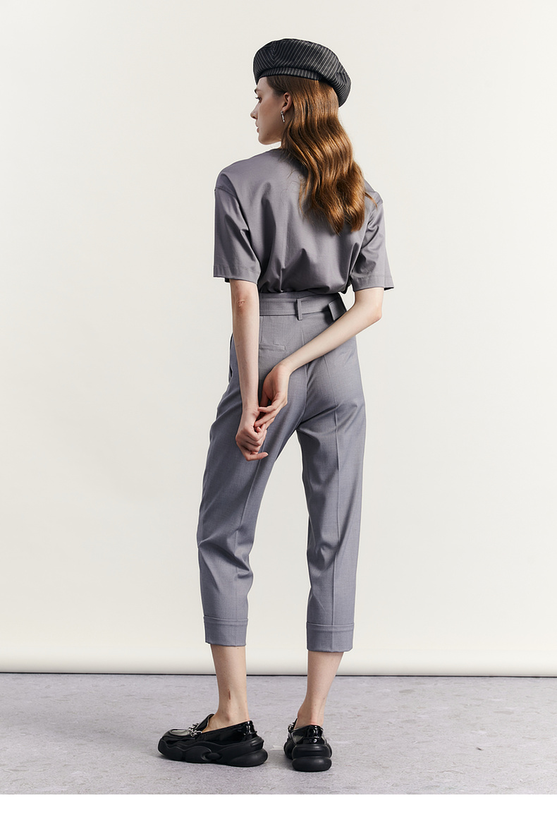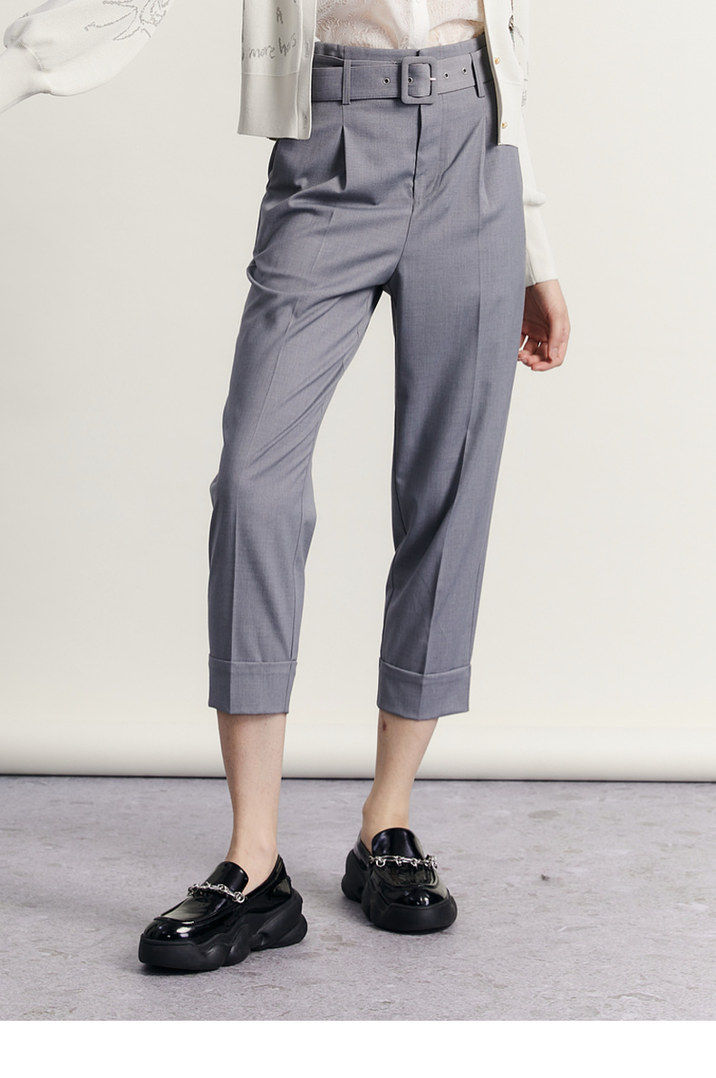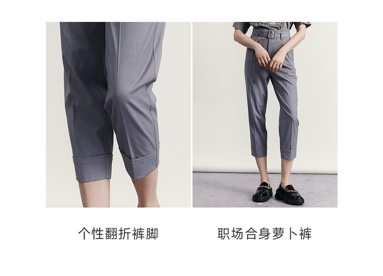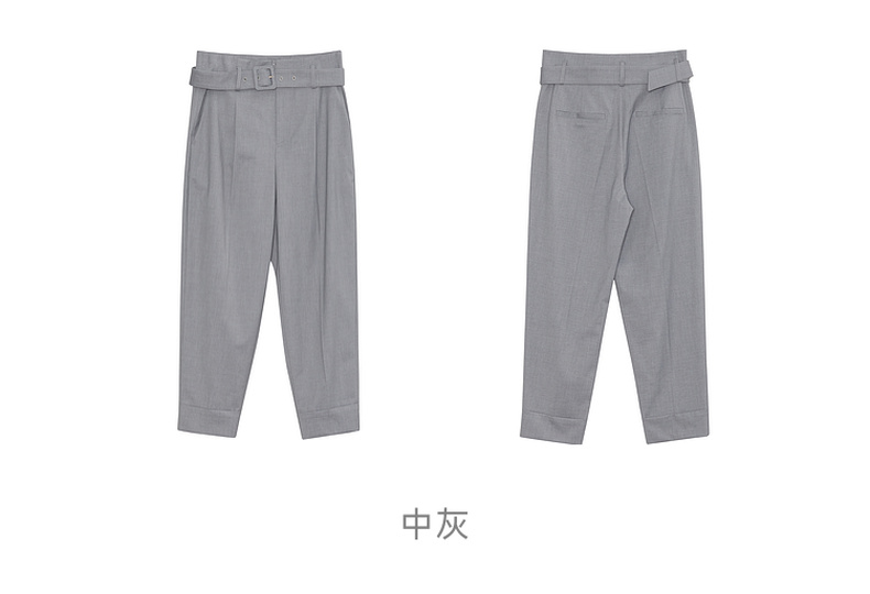 谜底休闲裤女2023秋新款复古高腰宽松萝卜九分裤配腰带233MK1138