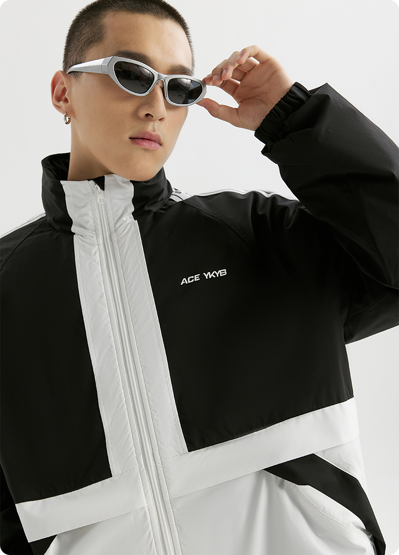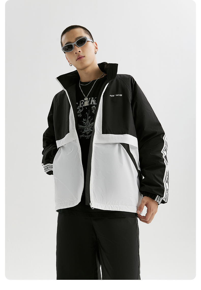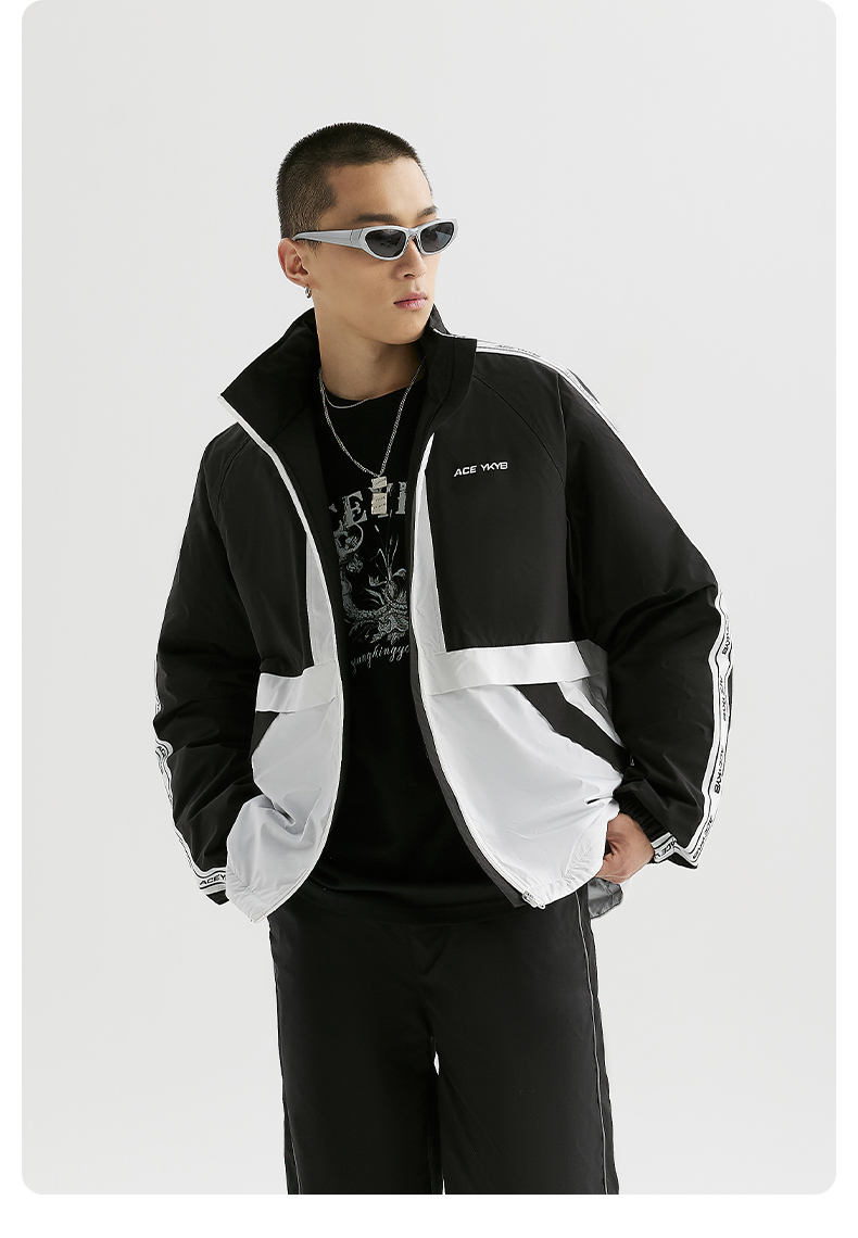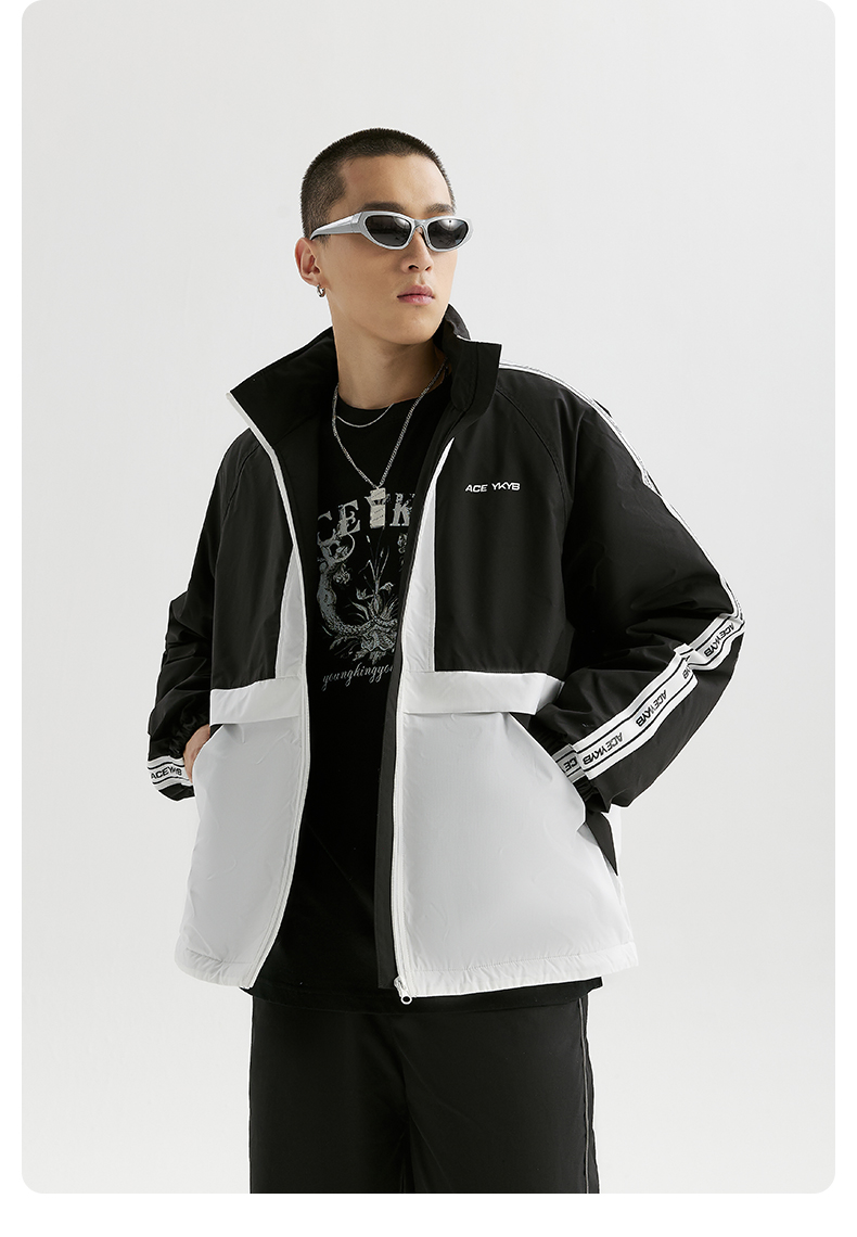 YKYB冬季新款棉衣潮牌宽松防水外套插肩袖显瘦黑白拼接撞色棉服
