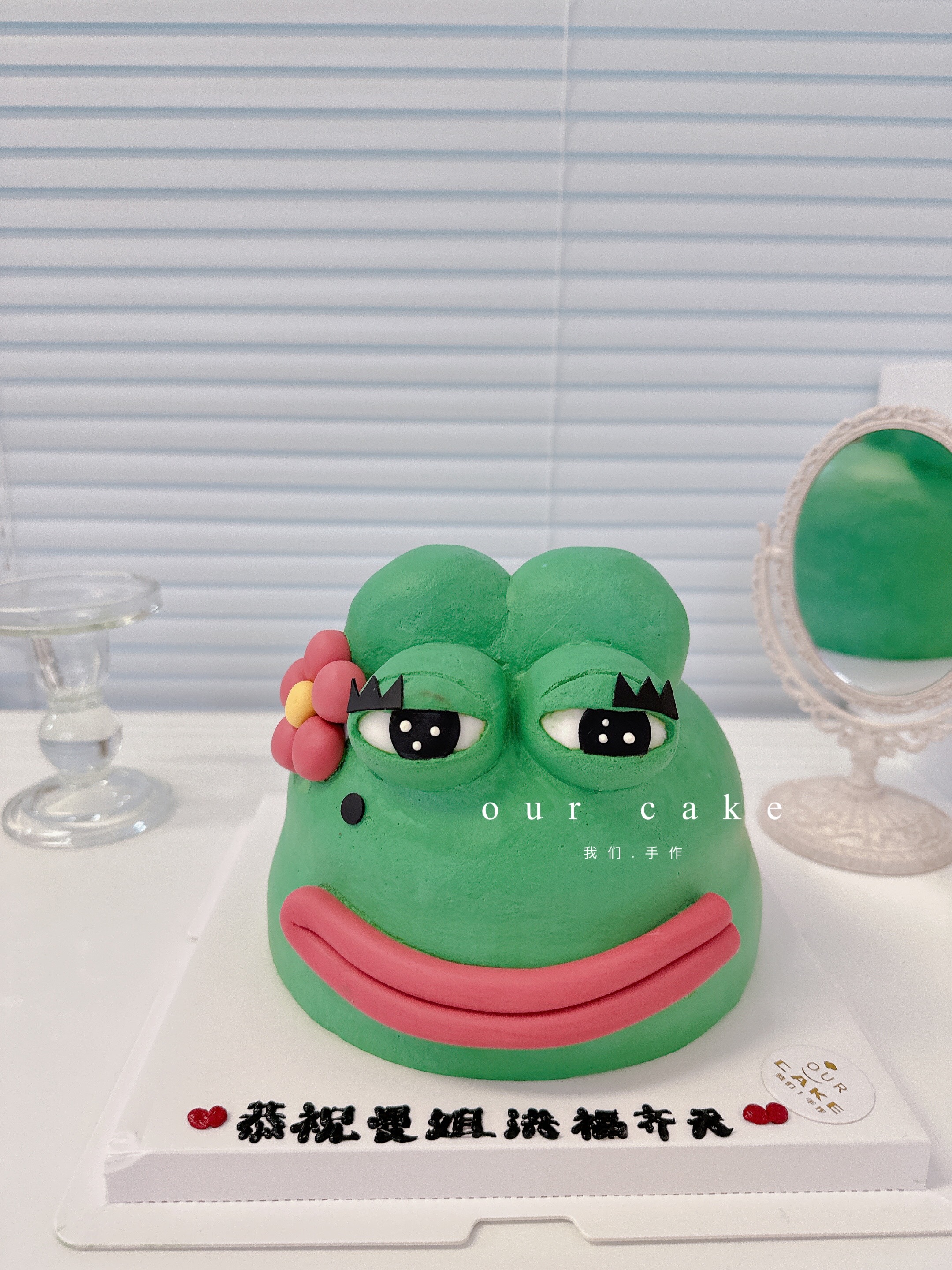 悲伤蛙卡通立体蛋糕(绿色素重!介意慎拍!)-低糖处理无添加