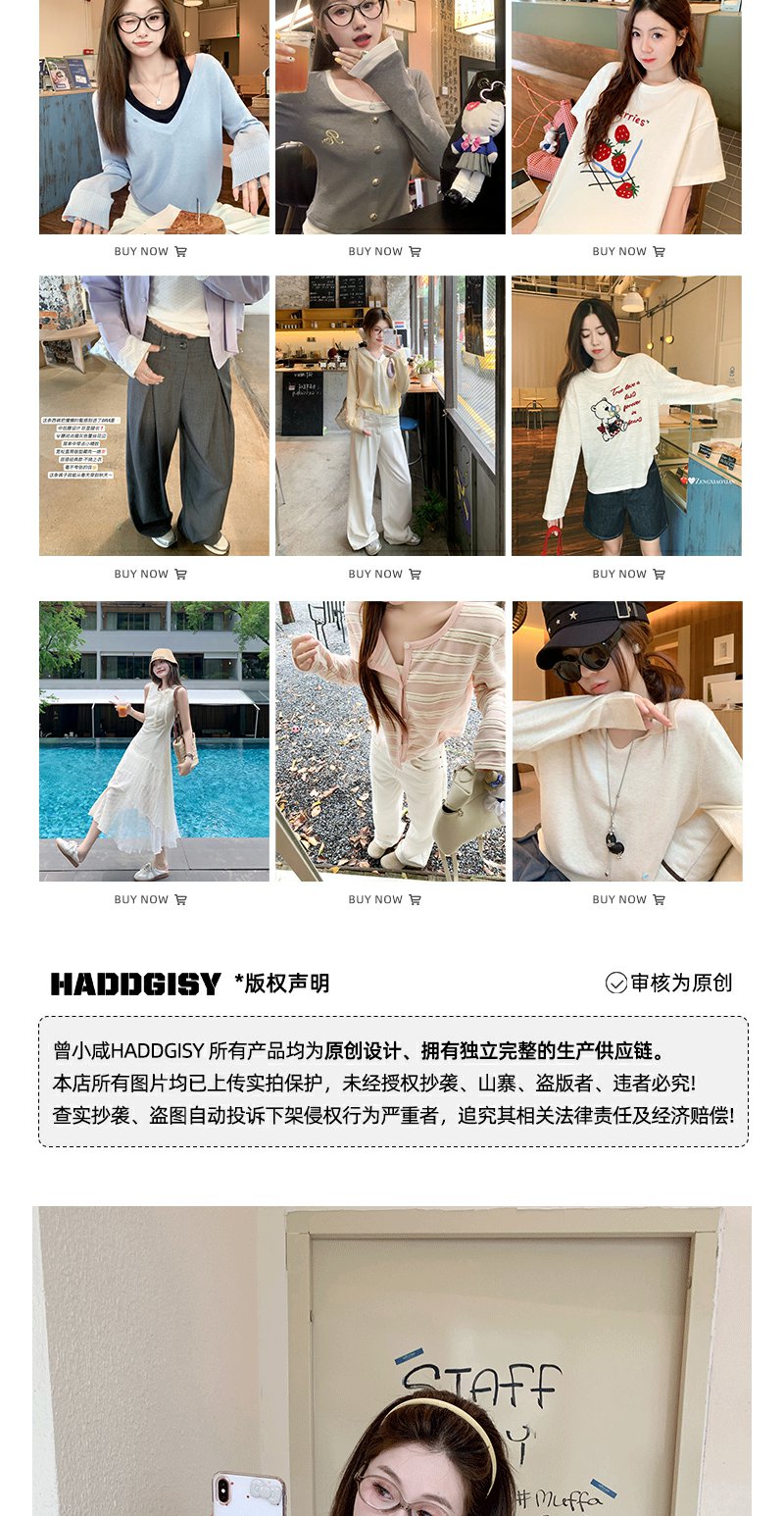 <曾小咸推荐>纯欲挂脖V领假两件针织衫