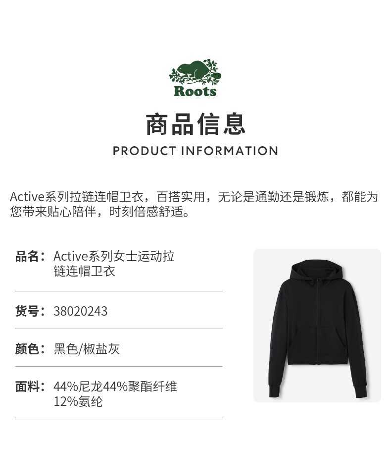 【2件9折】【ROOTS】女式运动拉链连帽卫衣