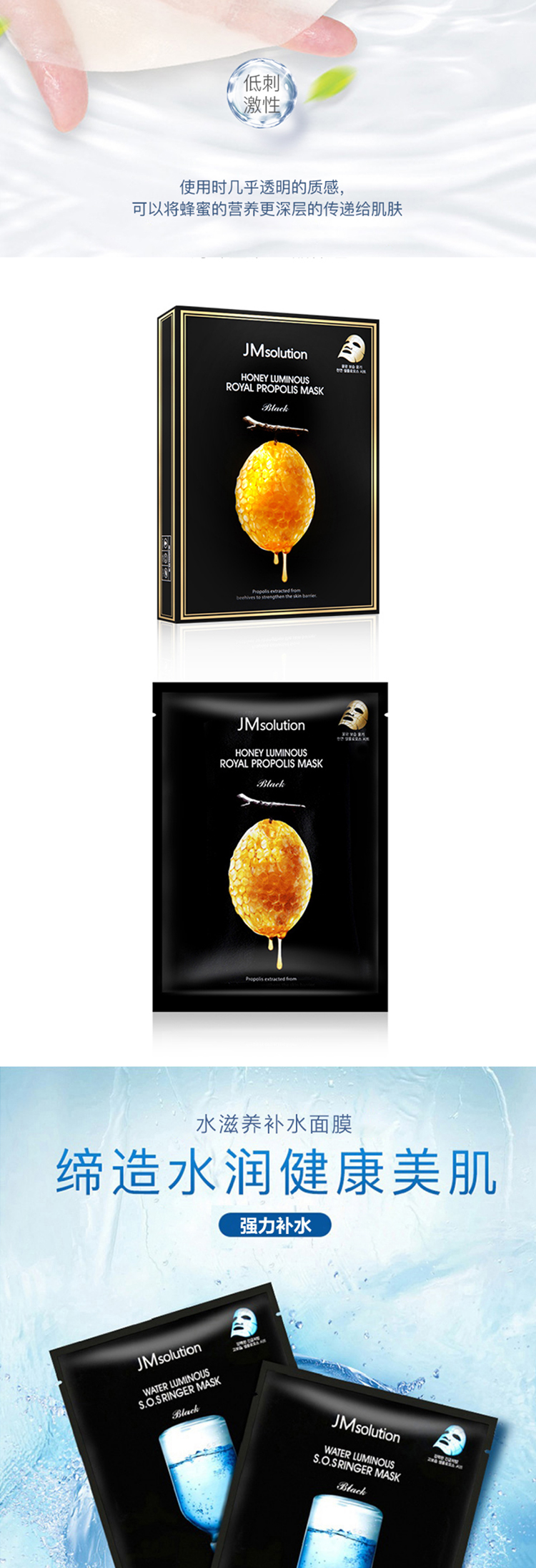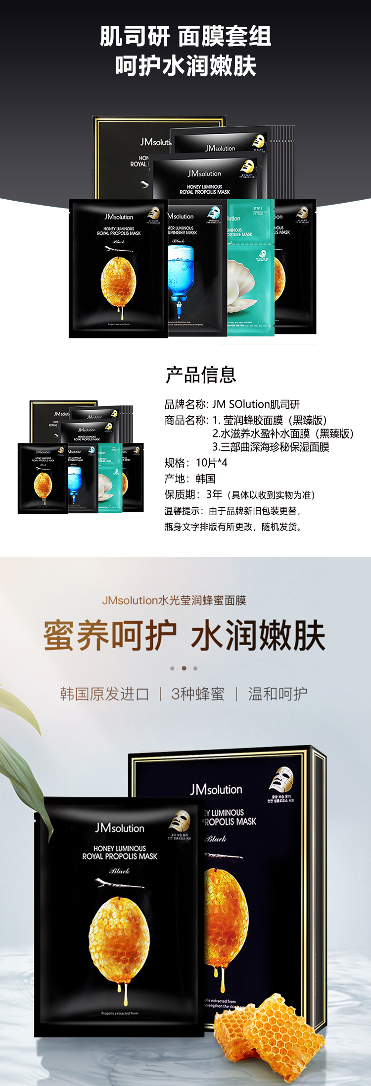 【4盒】JMsolution/肌司研 面膜套装二(蜂胶×2+水盈×1+珍秘×1)