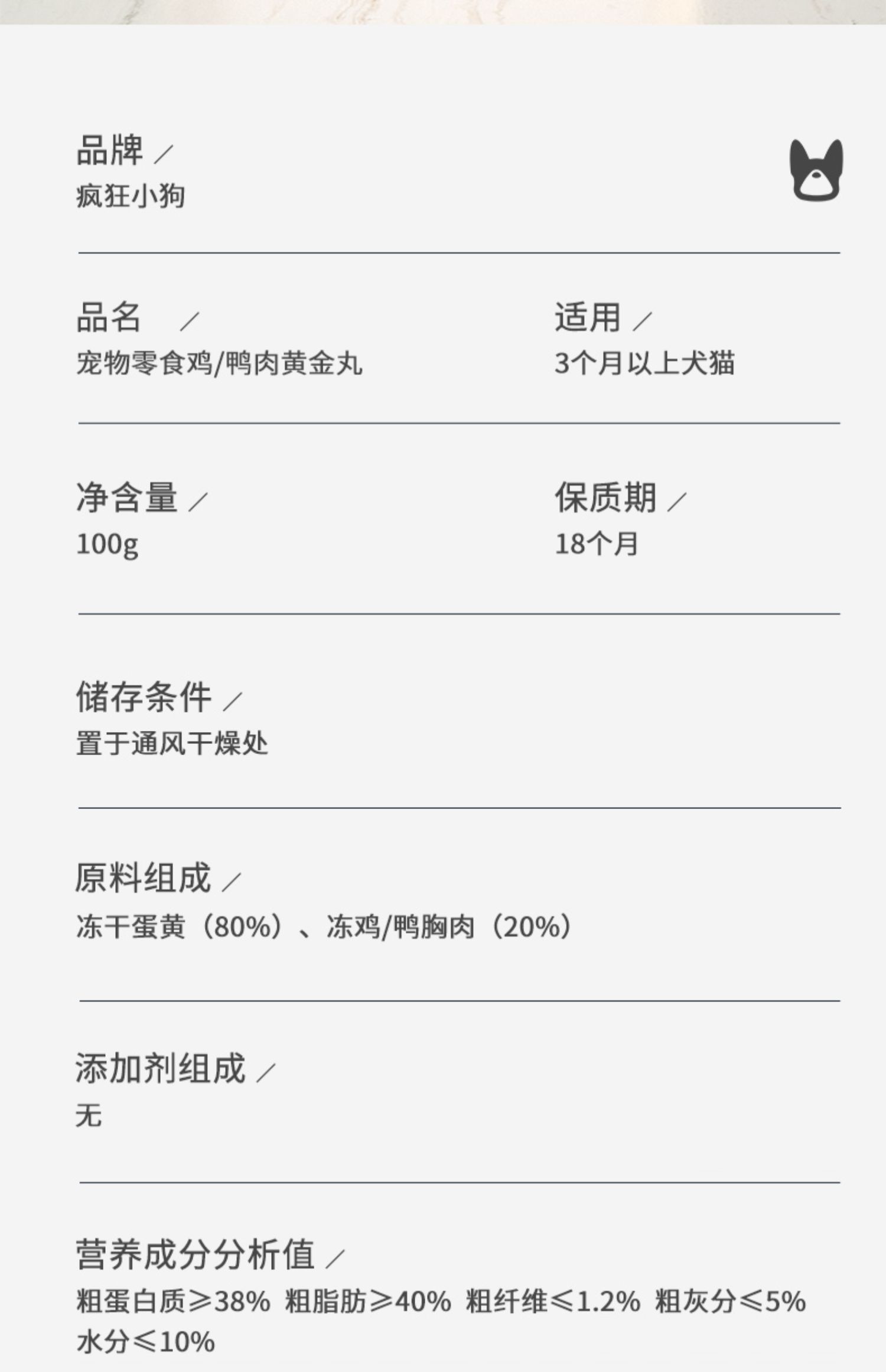 【69.9元任选5件】疯狂小狗 狗零食鸡鸭肉黄金丸 100g