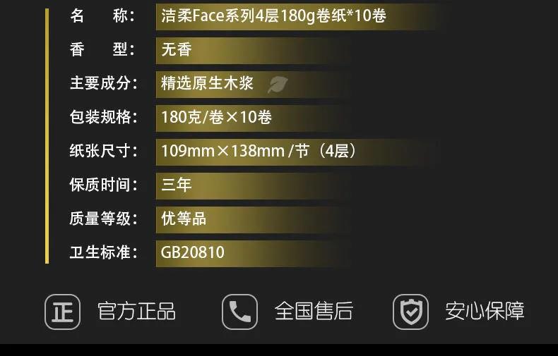 【自营】洁柔卫生纸180g(Face有芯)(10卷装) BJ095-10