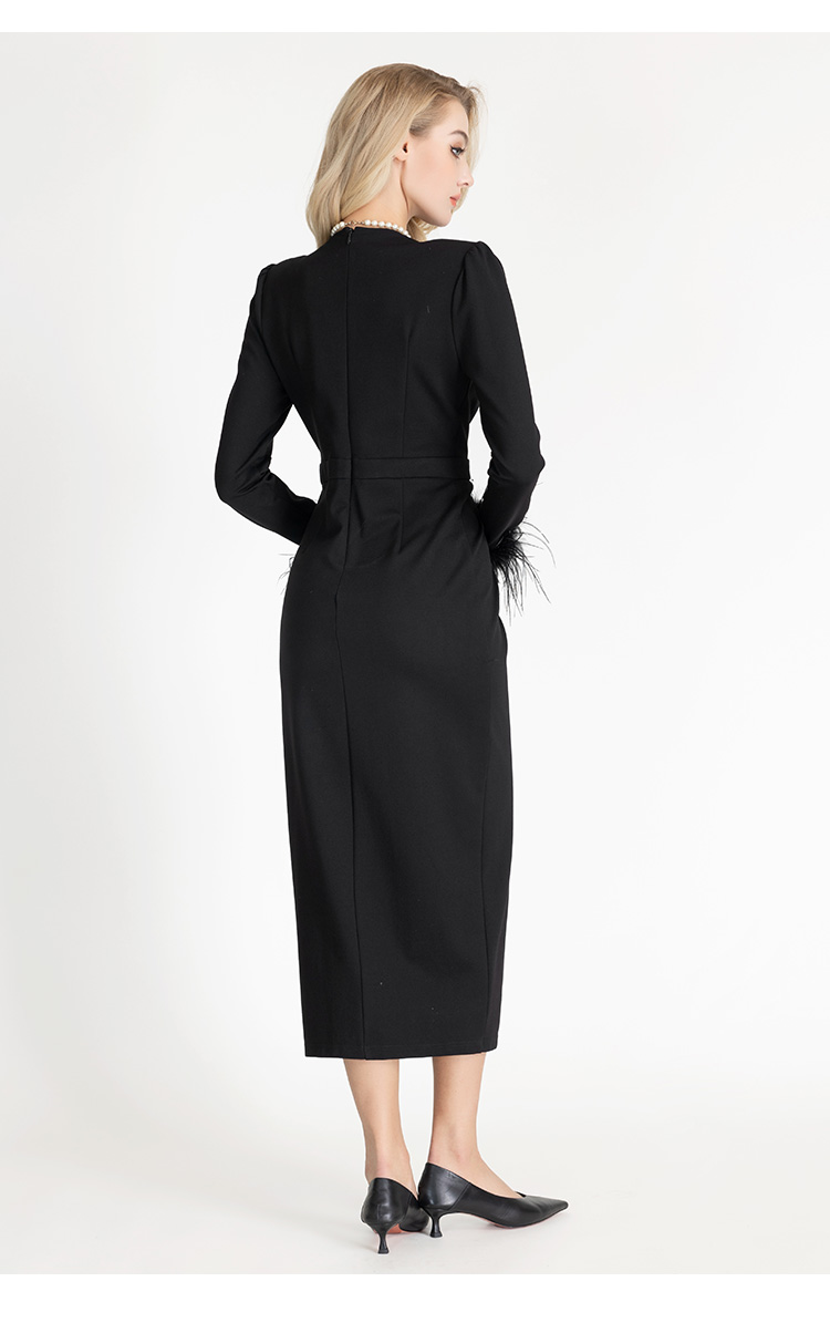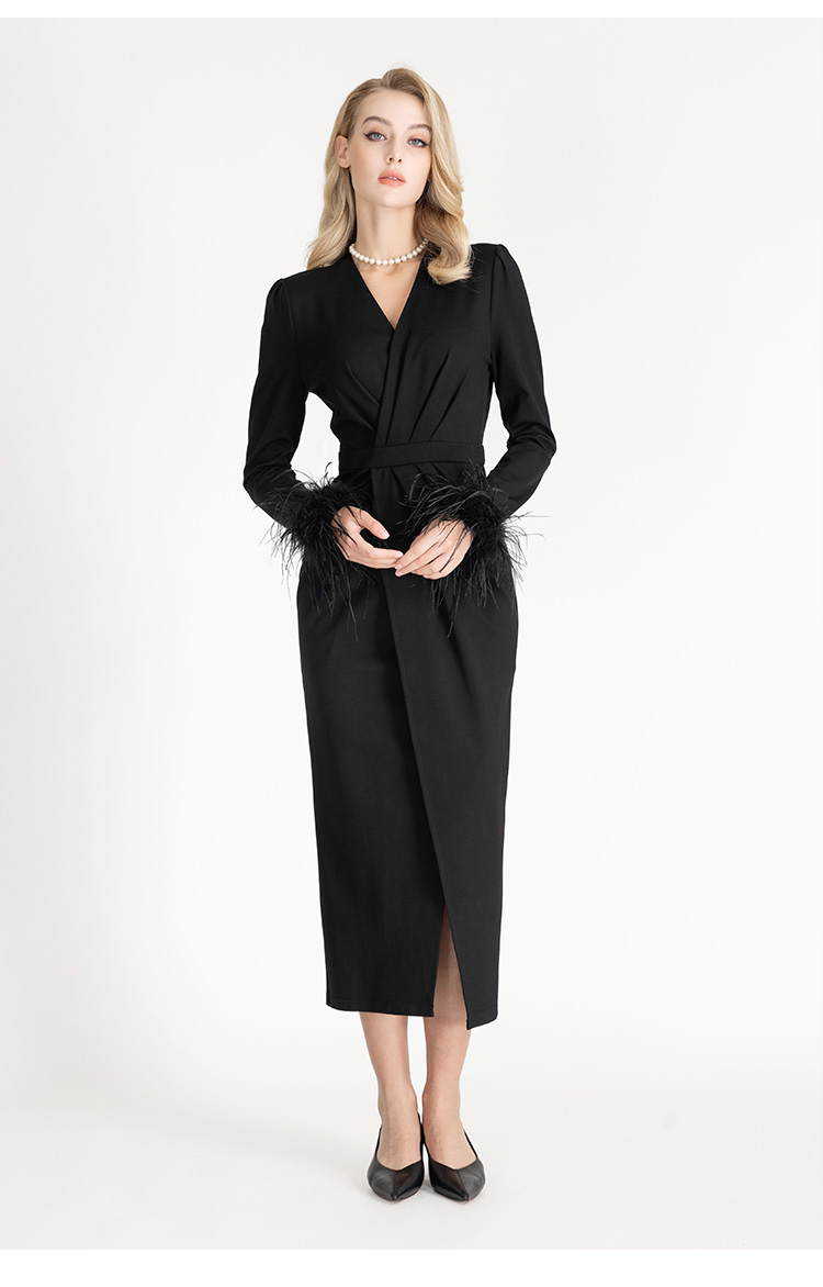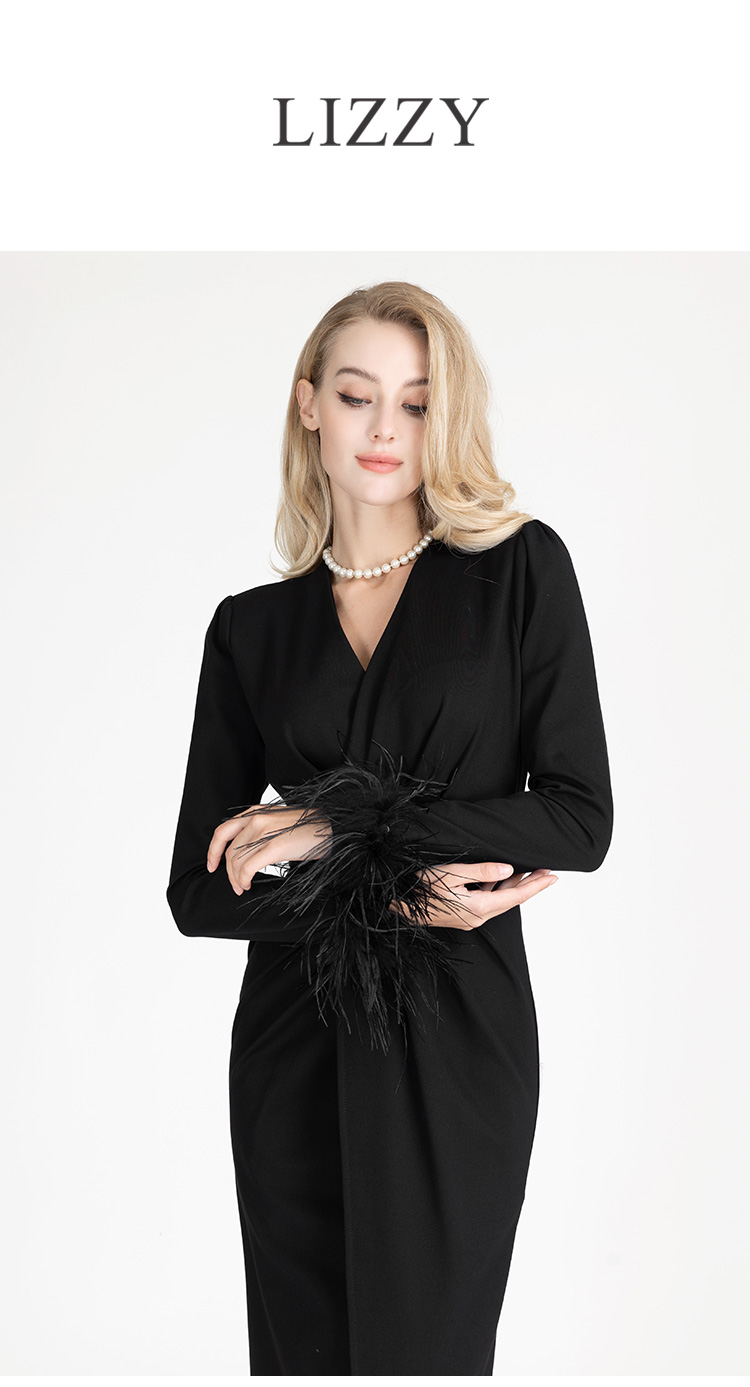 LIZZY早秋V领开叉宴会年会服时尚V领长款敬酒礼服优雅气质连衣裙7952