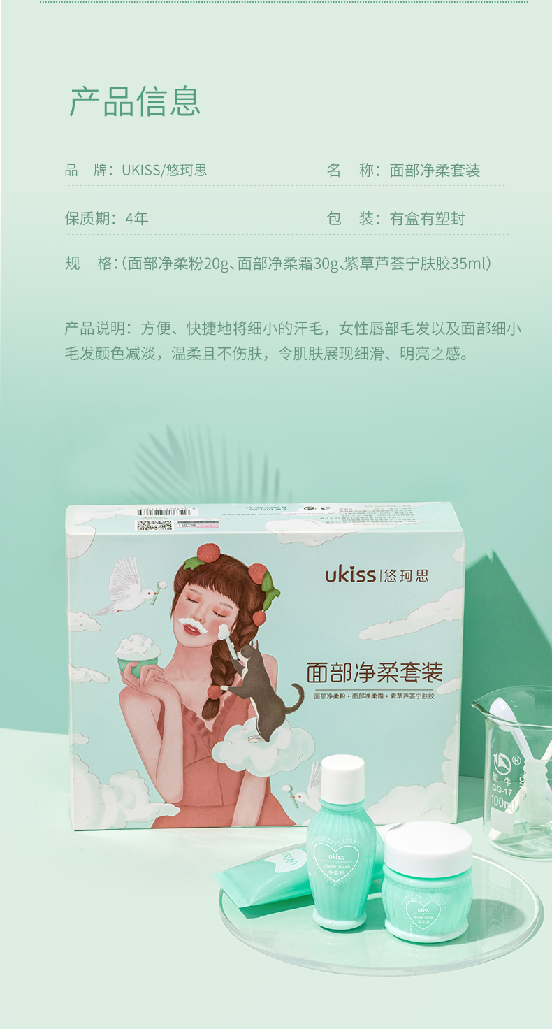 【专区99元任选3件】【安心配方 小胡须立马变隐形 尴尬不再有】ukiss悠珂思面部净柔漂胡剂套装