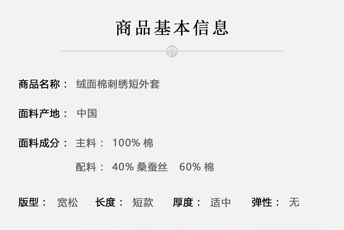 牧衣游原创 绒面棉刺绣短外套限量福利款 潮落【不支持会员折】