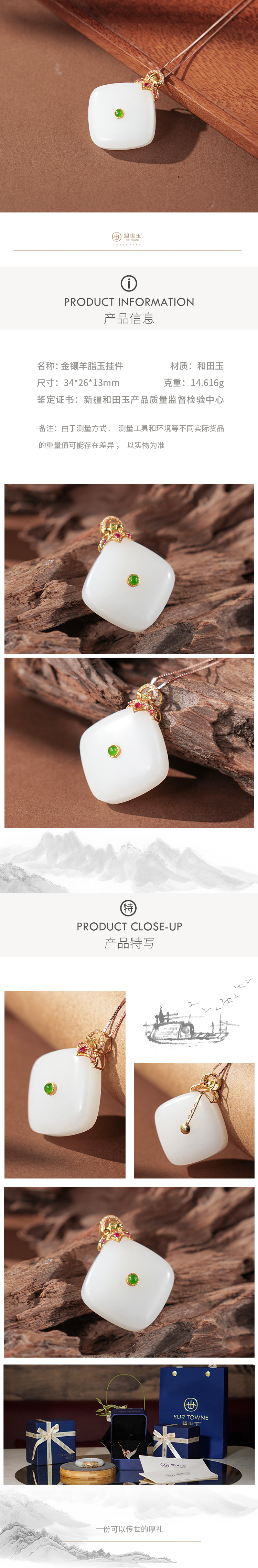 新疆国玉盟世玉金镶羊脂玉挂件【带证书·顺丰物流】