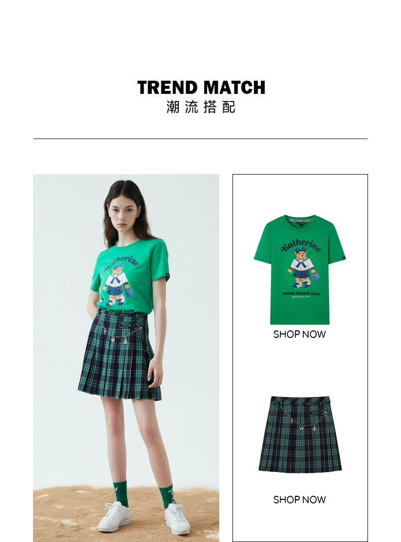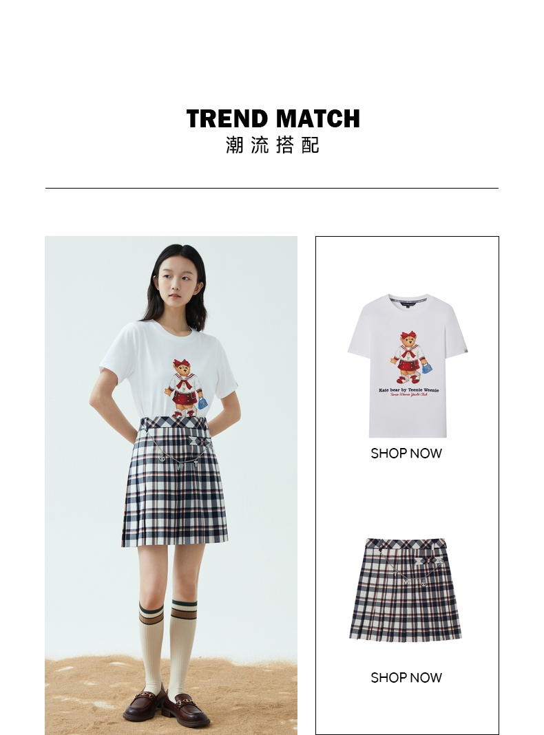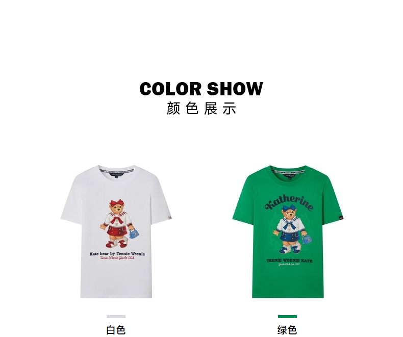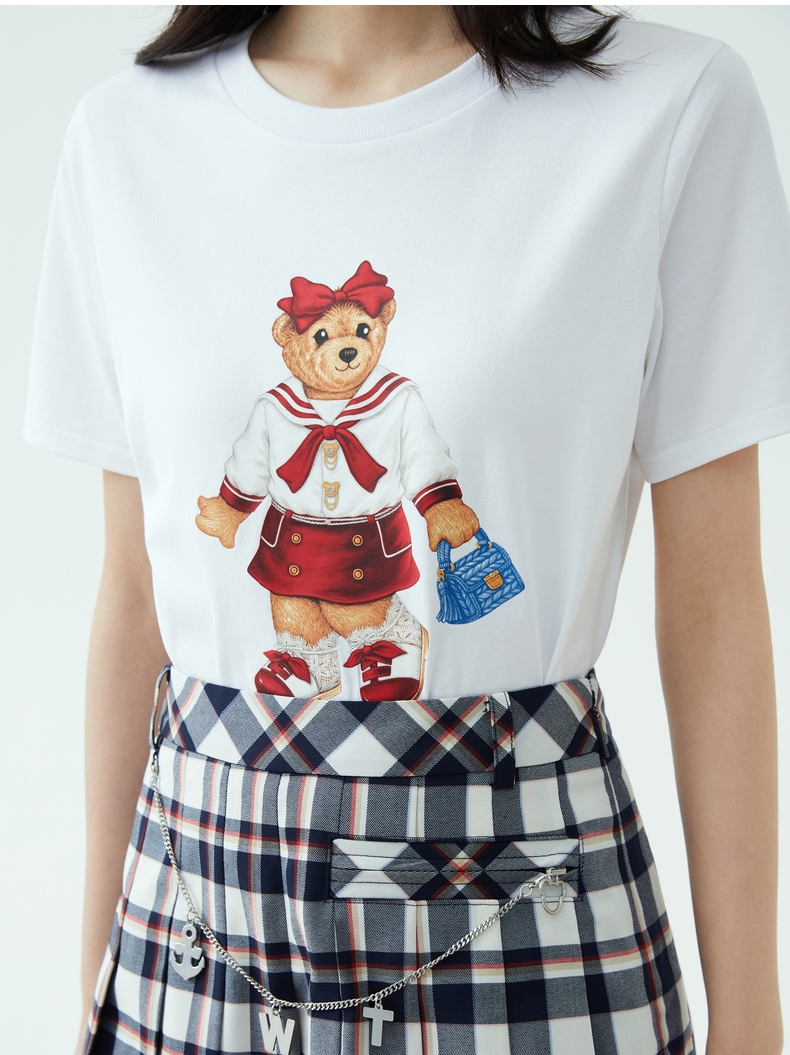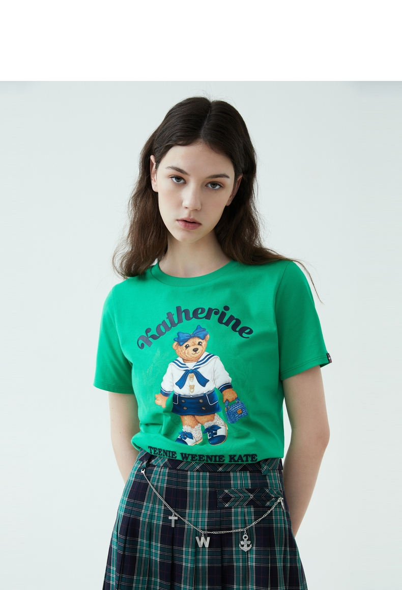 TeenieWeenie小熊2022新款女春夏季学院风休闲短袖T恤TTRW222405P