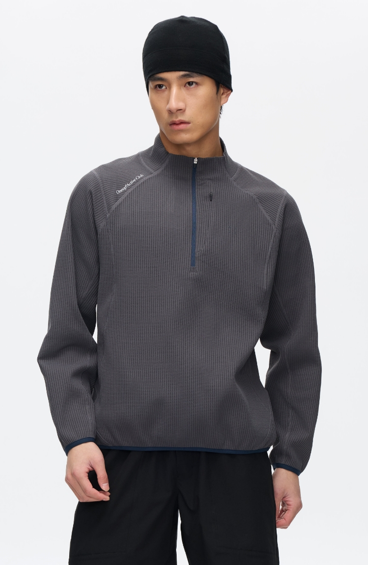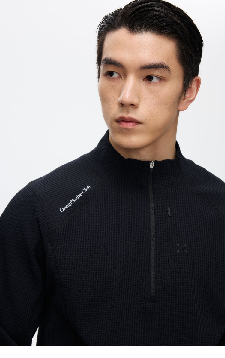 Oneup运动华夫格半拉链长袖