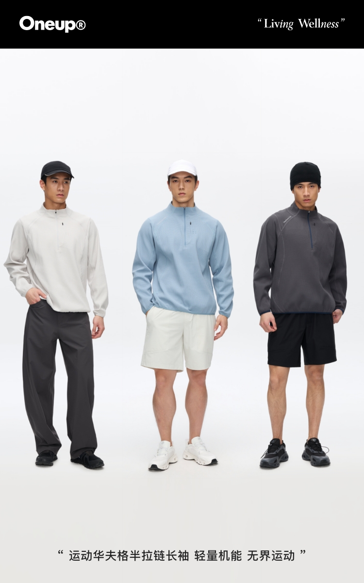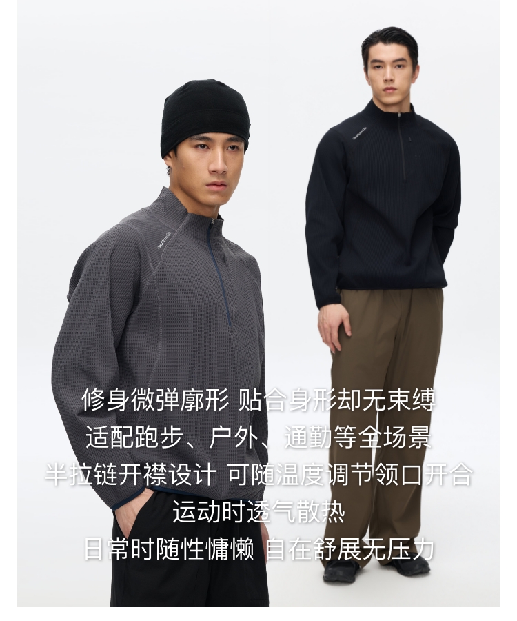 运动华夫格半拉链长�