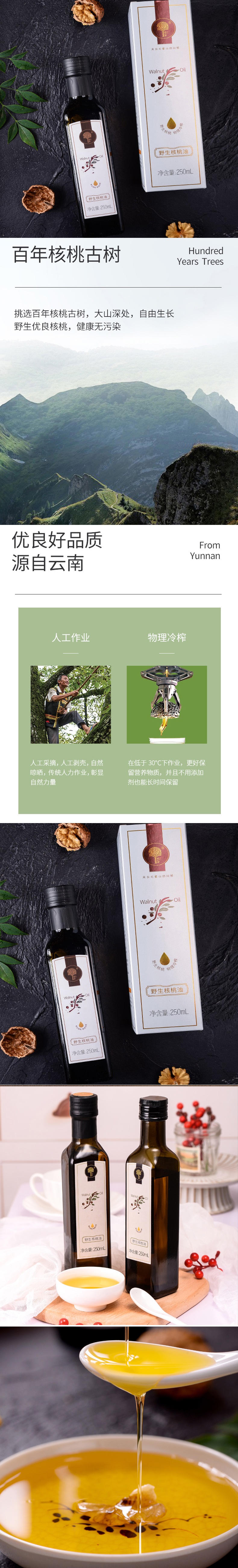 选取远离工业地区种植高原核桃低温压榨,保持油的天然性,油色清澈透亮,营养充分保留,散发清醇核桃香味,含多种维生素和不饱和脂肪酸,易被人体吸收,是坚果营养的金字塔