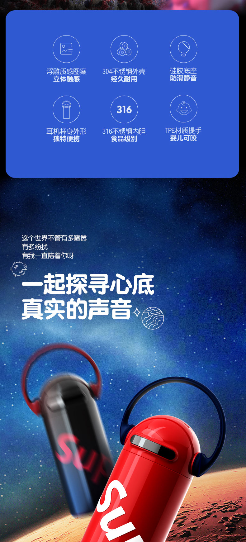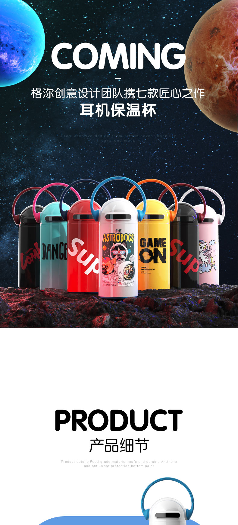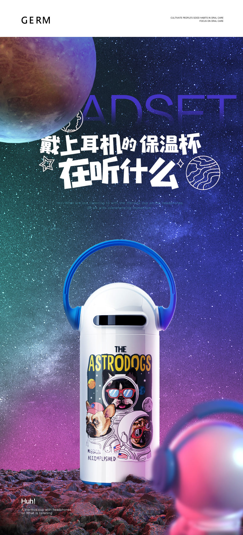 艾优格沵 日本GERM格沵耳机保温杯(白色宇航狗)