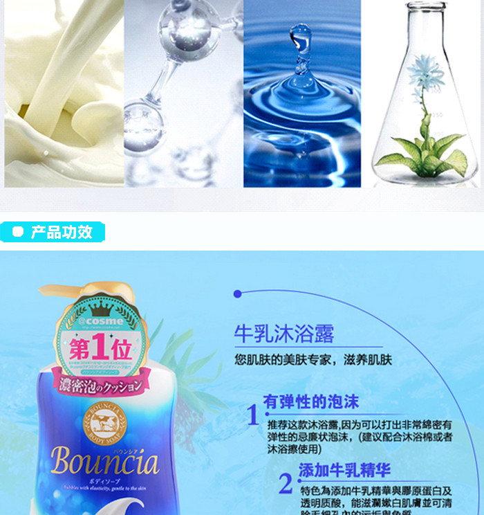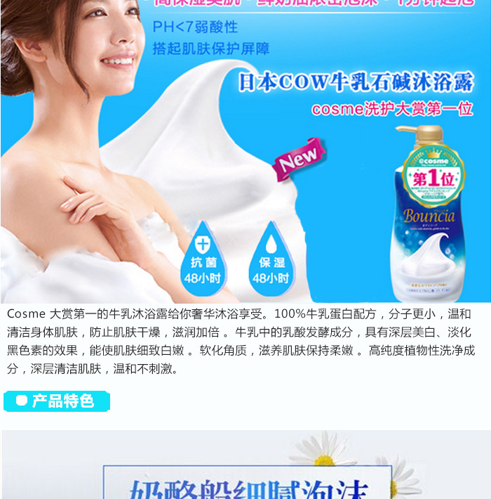 【抄底囤货】日本COW牛乳石碱bouncia沐浴露*3瓶(玫瑰味/原味)