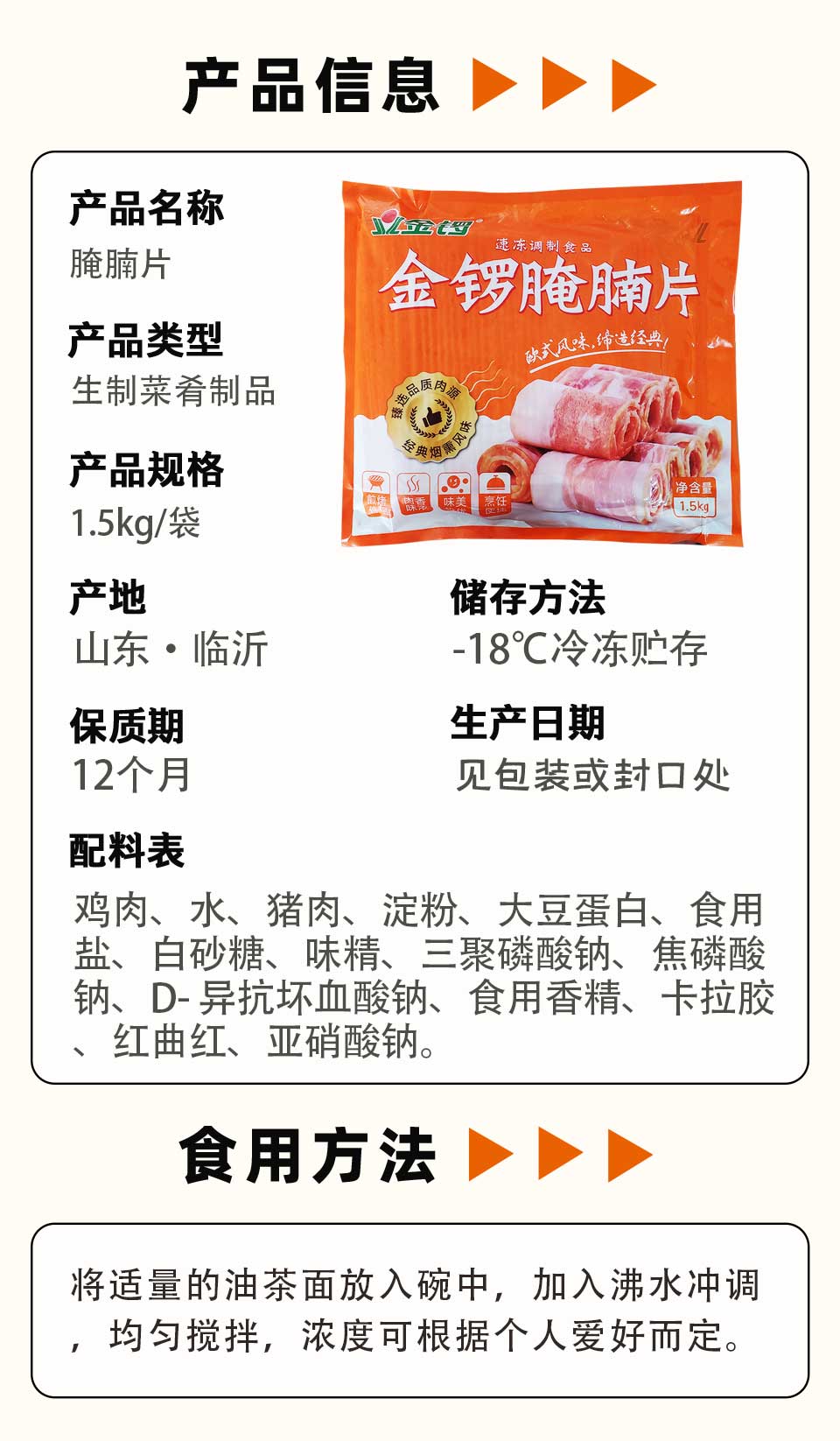 金锣腌腩片(培根)1.5kg/袋 8袋/件