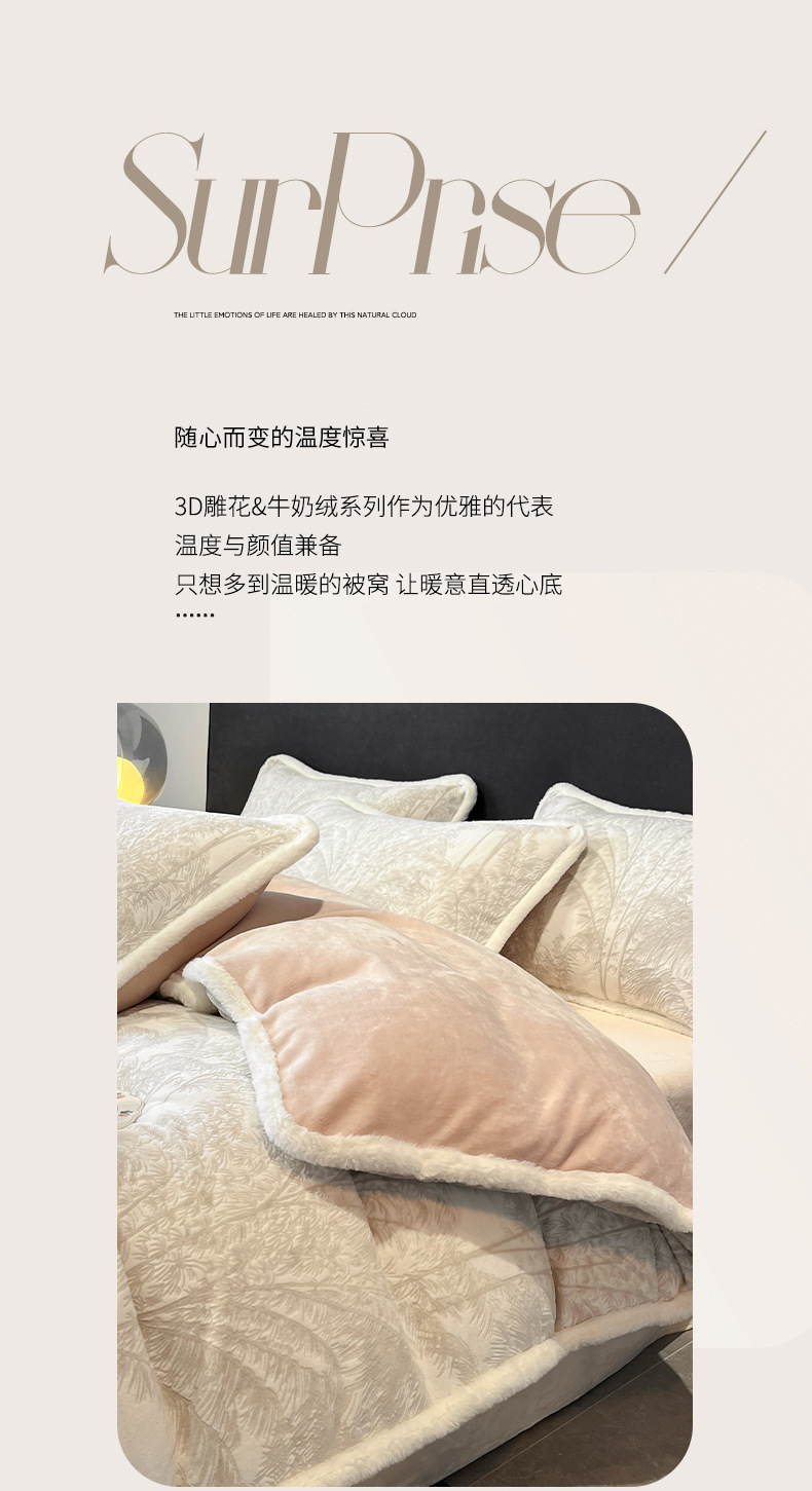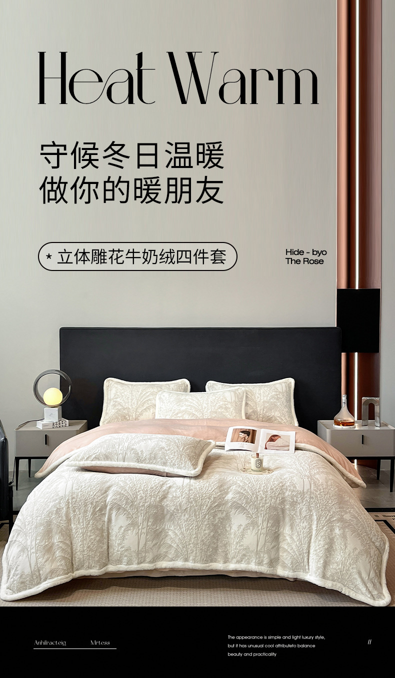 提花雕花牛奶绒 高克重立体提花雕花牛奶绒四件套 珊瑚绒床单床笠保暖双面加绒被套