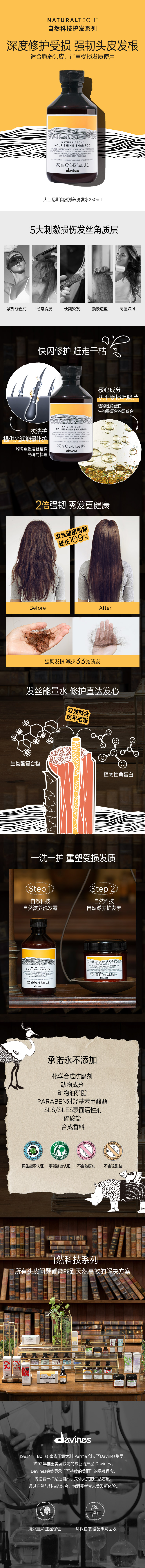 【清仓好价】大卫尼斯Davines自然滋养活力洗发水修复毛躁防脱固发250ml