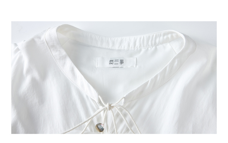 两三事 蜜夏神谕 2025春季新款文艺风蝴蝶结大翻领印花衬衫女宽松
