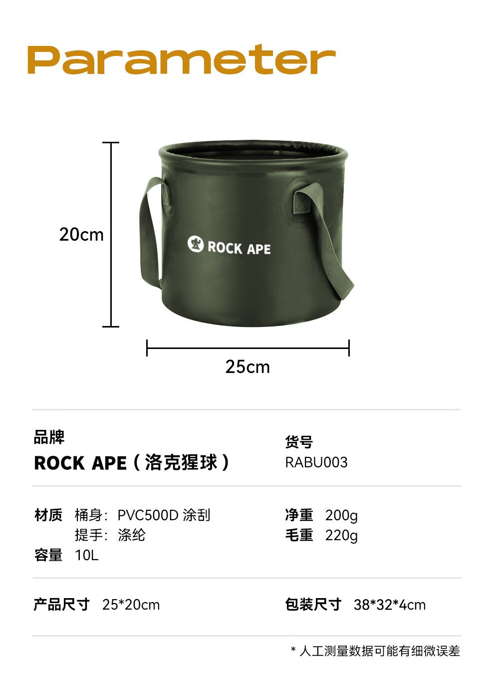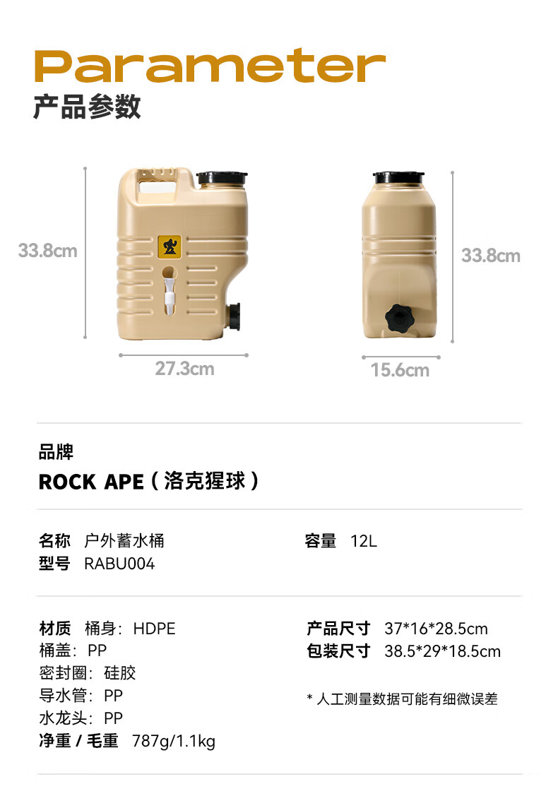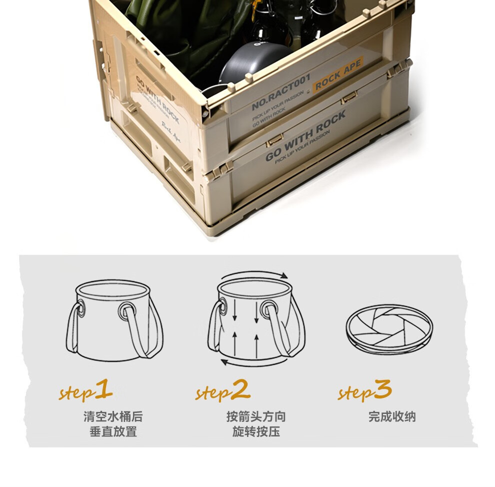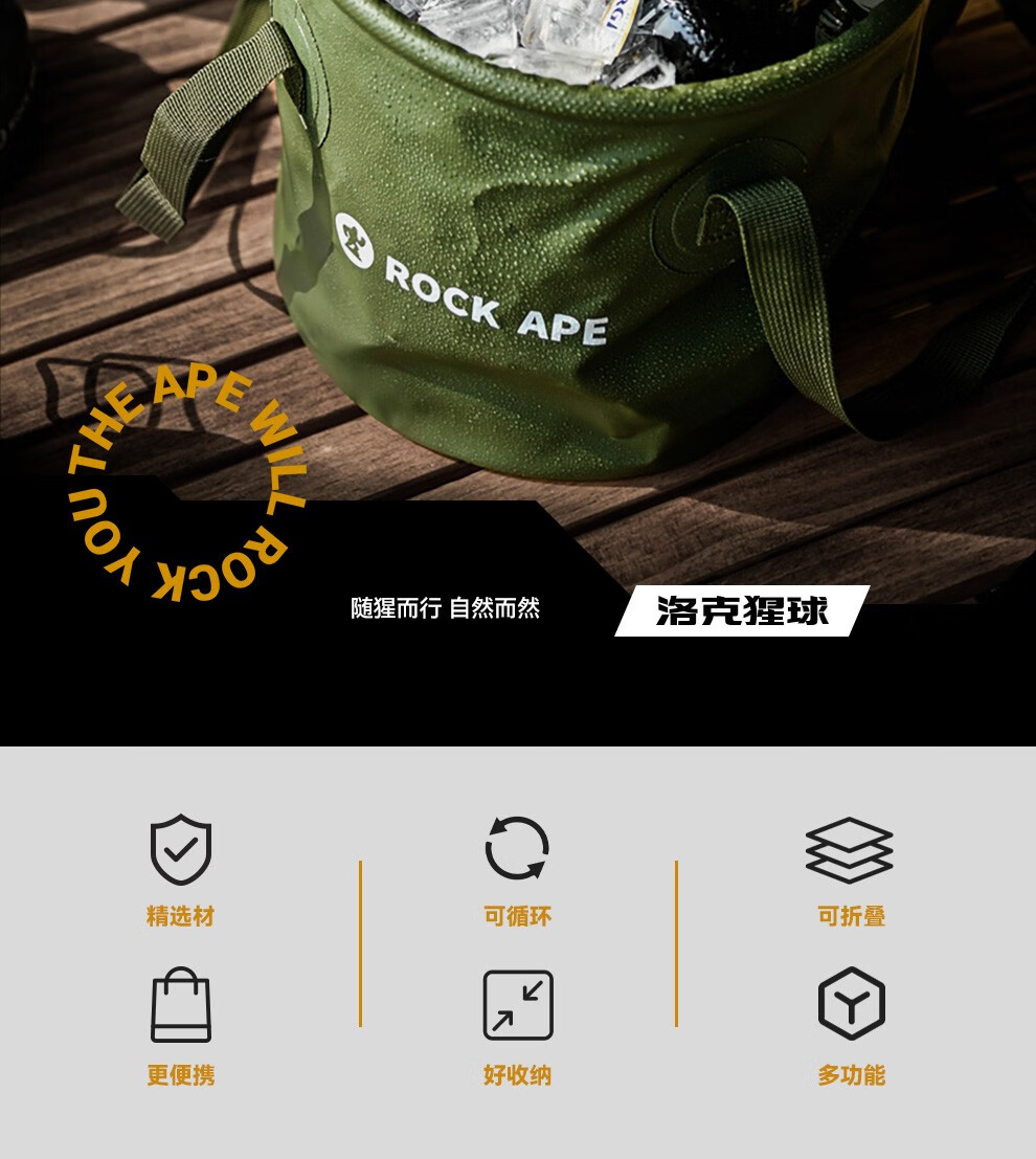 【户外折叠水桶】洛克猩球 RockApe 可折叠圆形水桶户外旅行露营便携式水盆野餐储水桶10L 折叠水桶10升