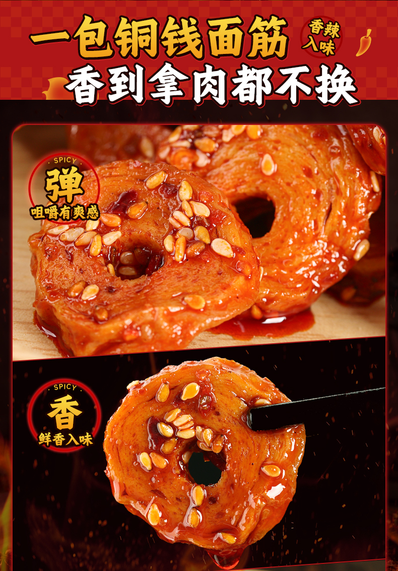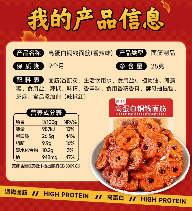 【39任选10件】高蛋白铜钱面筋(香辣味)25g*4袋