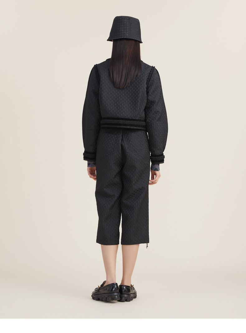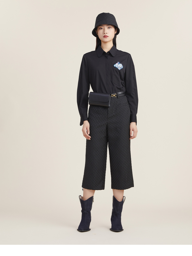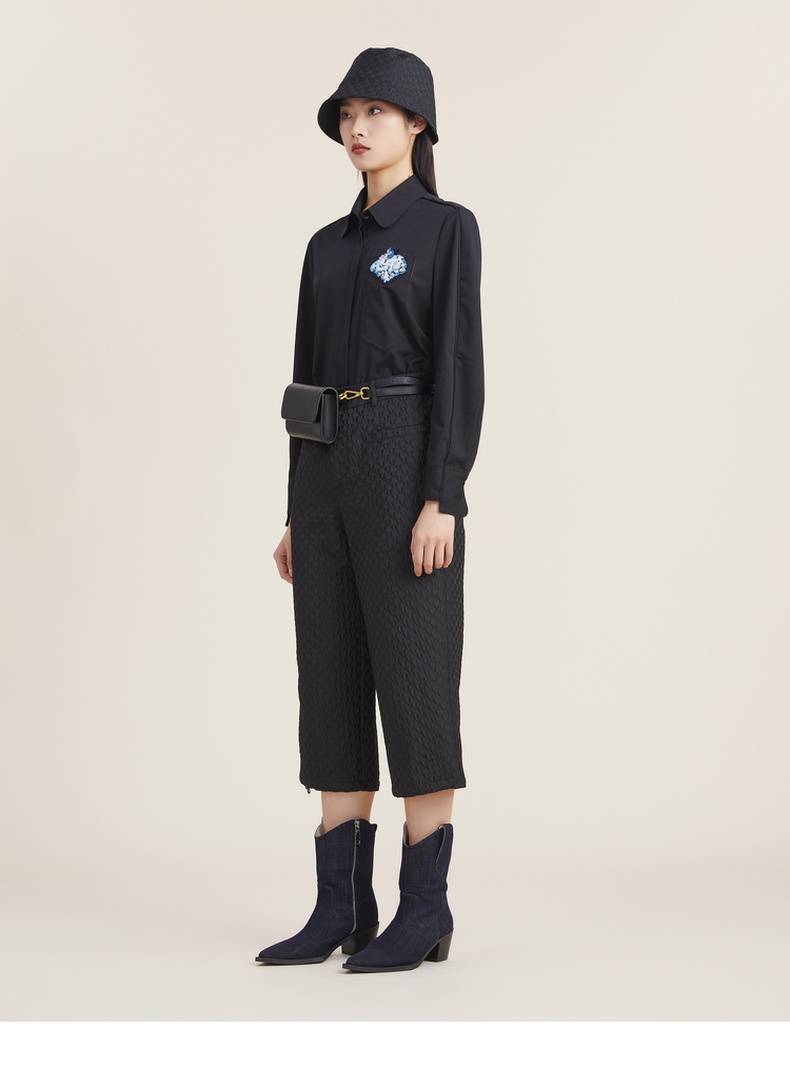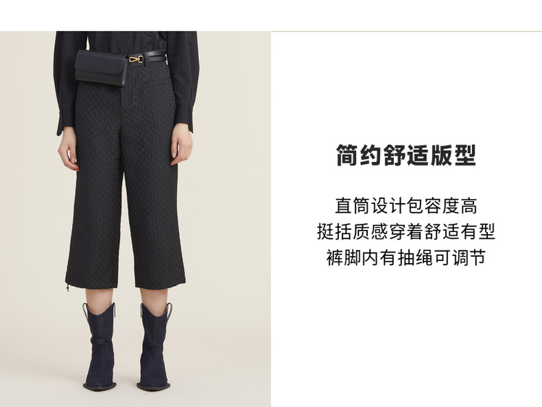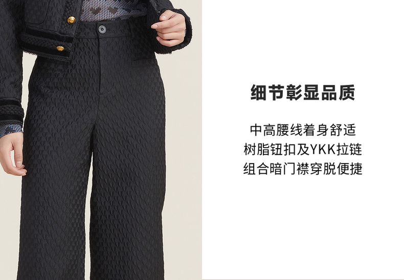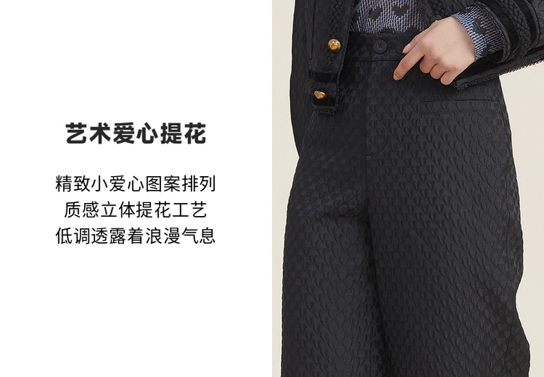 谜底直筒裤女2022秋新款立体爱心压花挺阔通勤裤子223MK1164