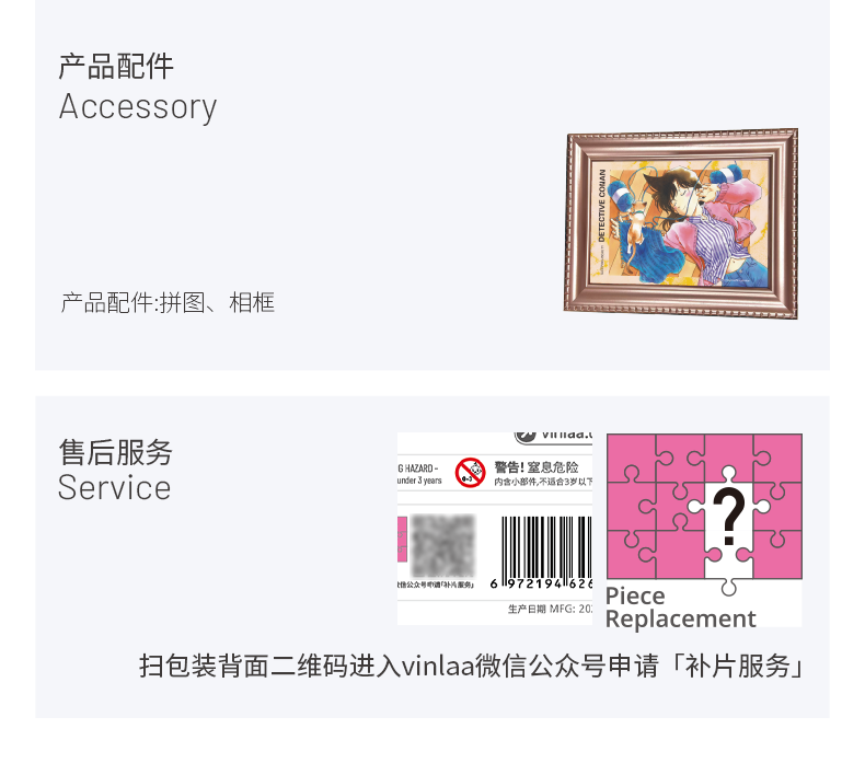 VINLAA柯南拼图儿童玩具100片名侦探柯南相框拼图温馨时刻温馨时刻(款式自选)
