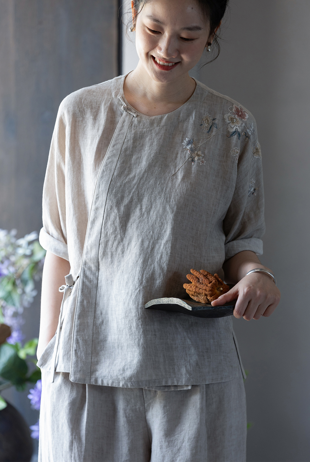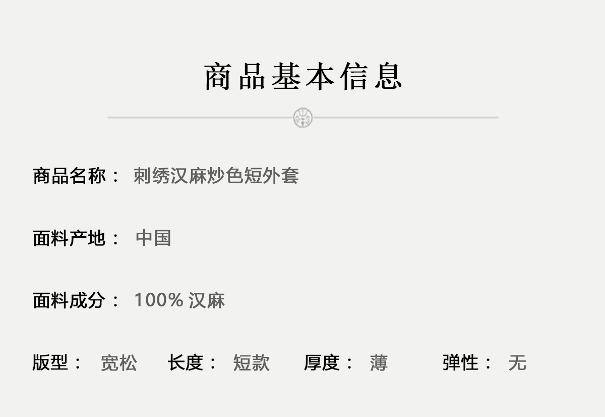 牧衣游原创 手工刺绣汉麻炒色短外套轻薄禅意质朴复古开衫 清风我