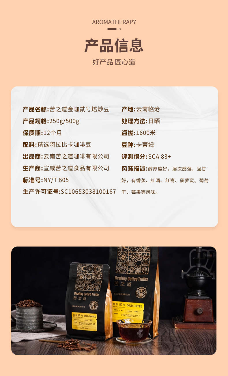 苦之道 金咖贰号 云南精品咖啡焙炒豆 日晒中烘咖啡豆
