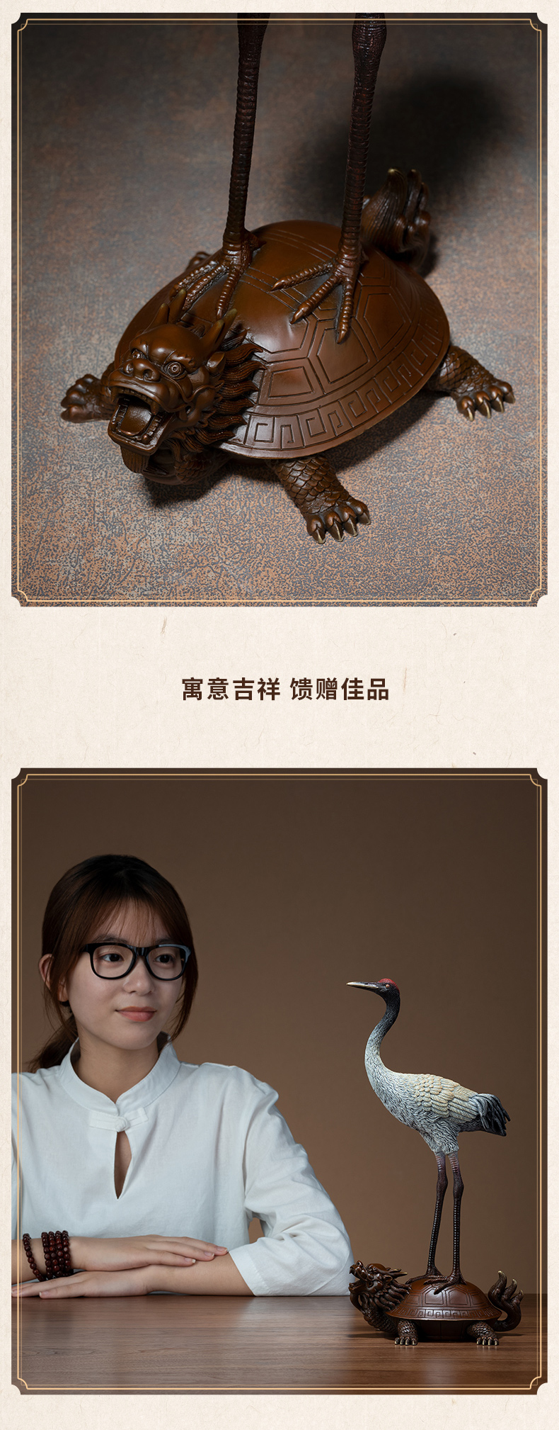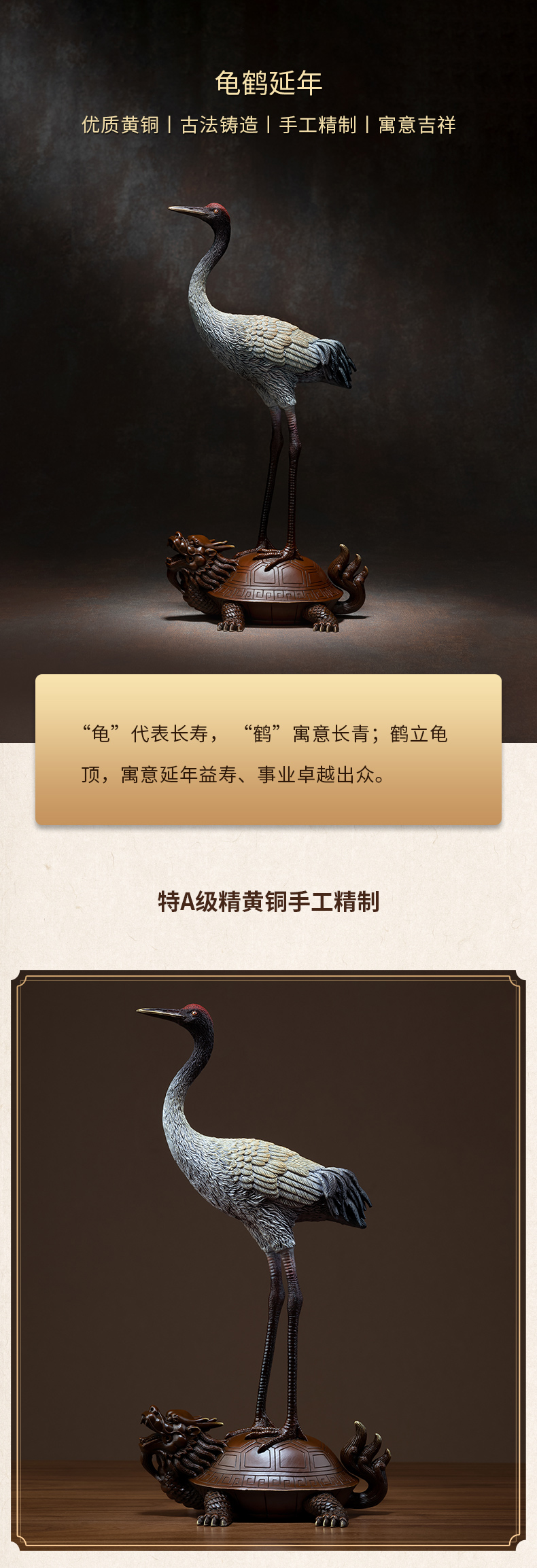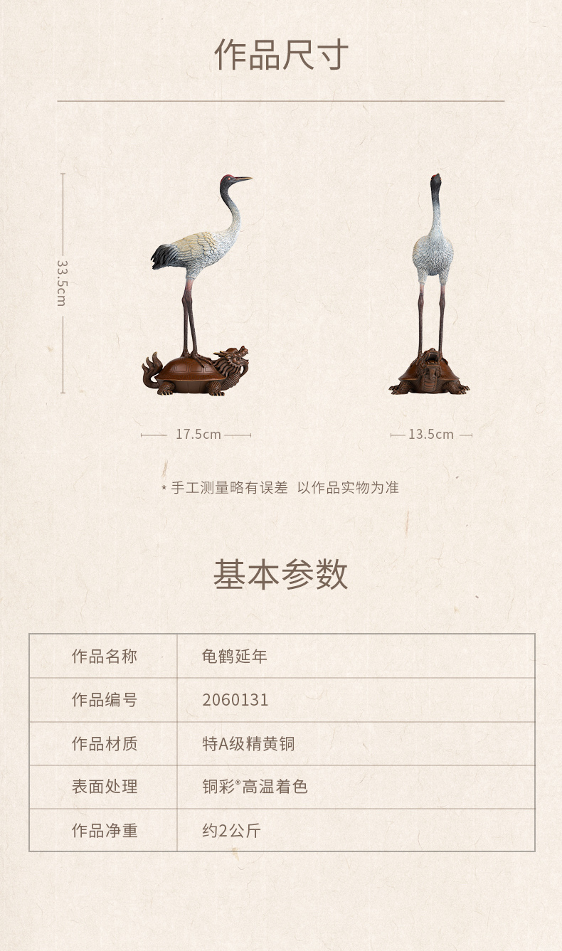 预售60天 铜师傅 全铜摆件《龟鹤延年》家居饰品 铜工艺品 客厅 礼品摆件