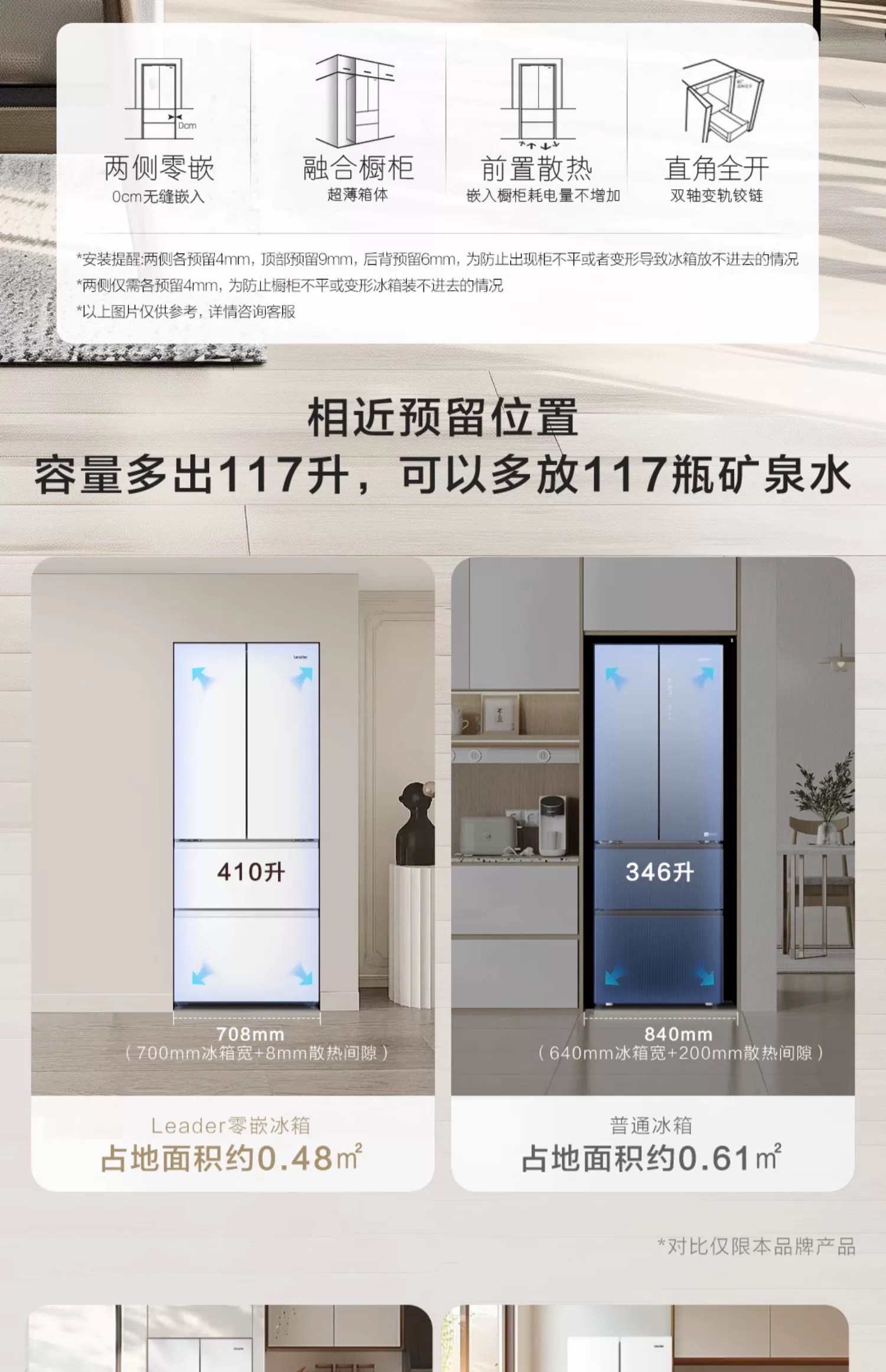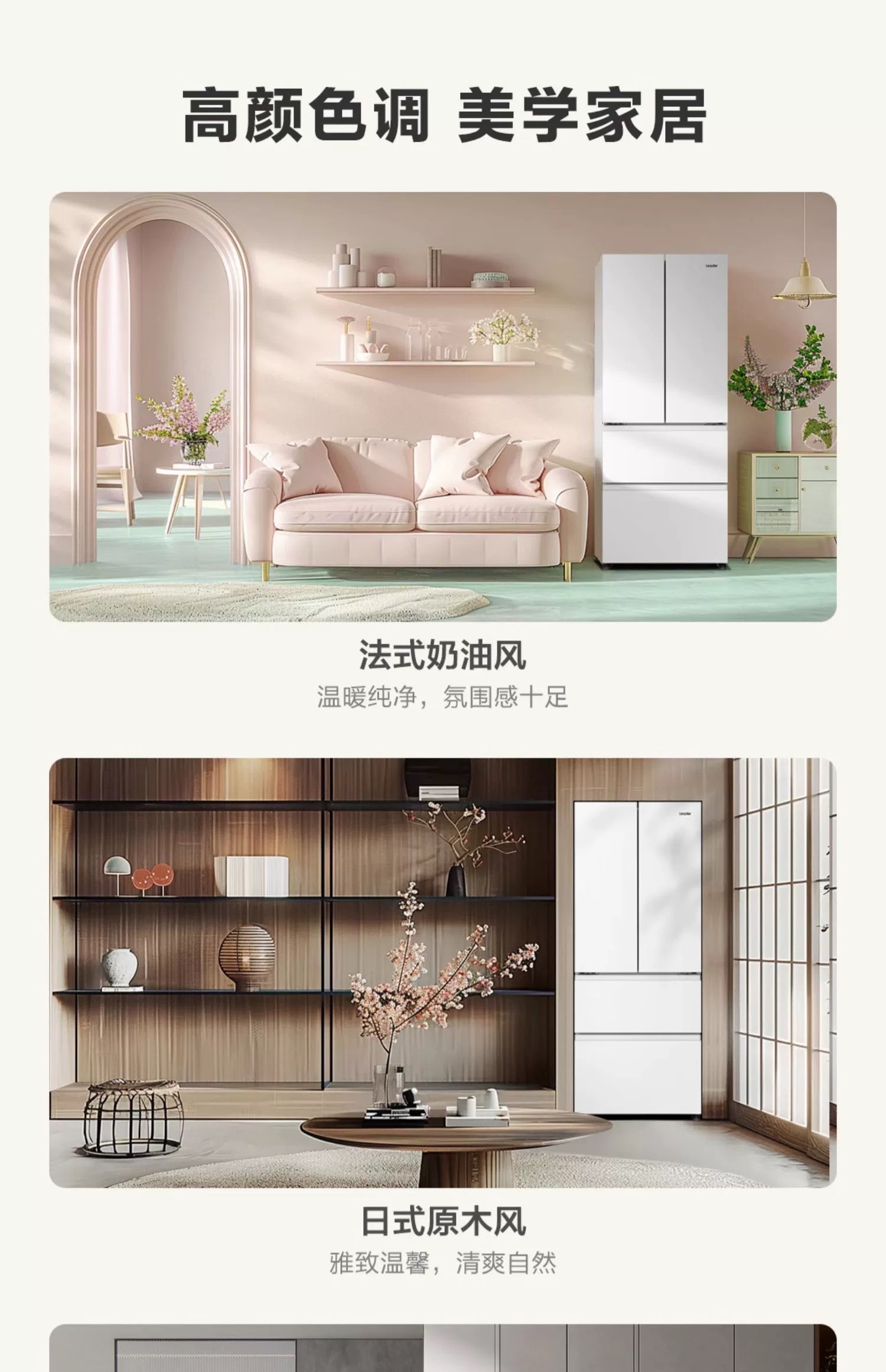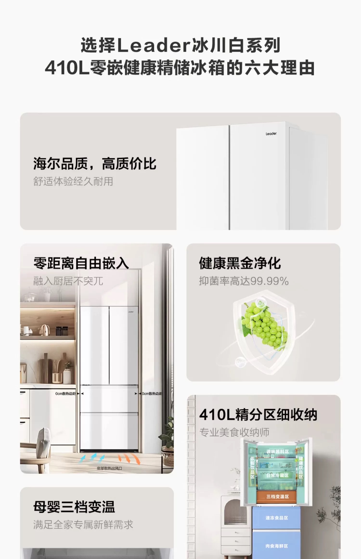 海尔(haier)冰箱410升【BCD-410WLLFD4DM9U1】零嵌入式超薄法式多门四门双开门一级能效双变频风冷无霜底部散热统帅大容量冰箱 官方热卖推荐+母婴三档变温+WIFI智控