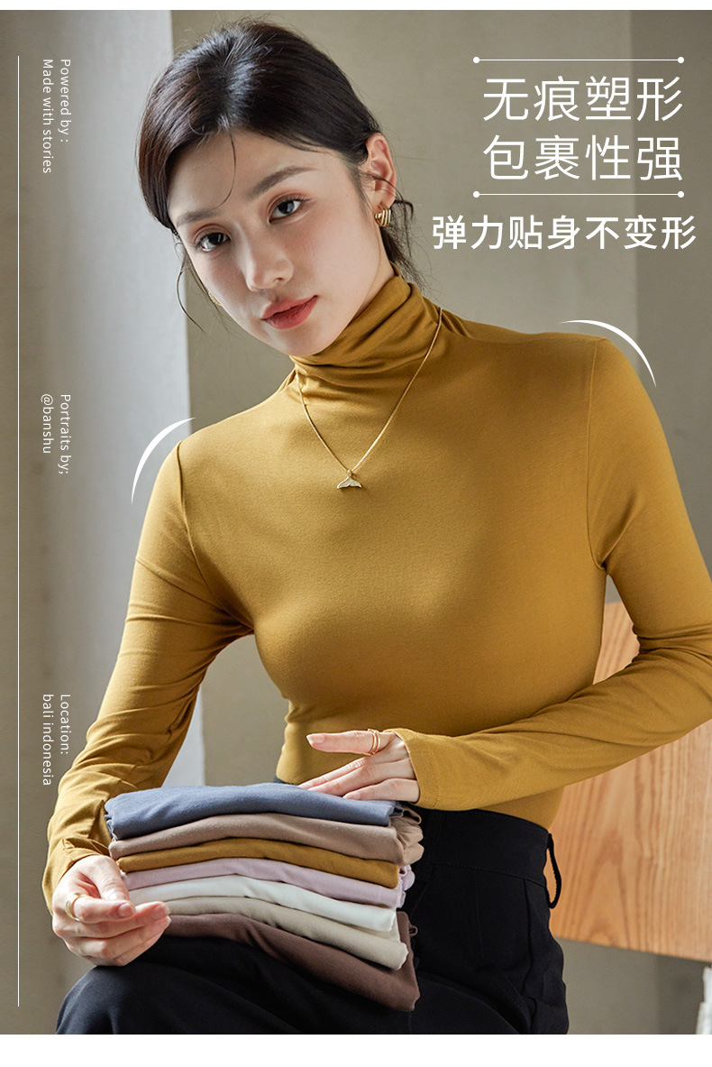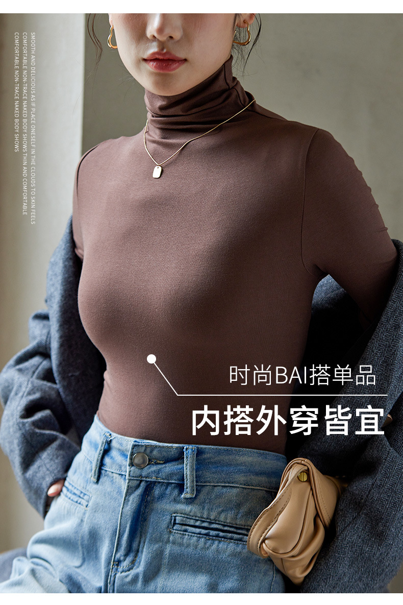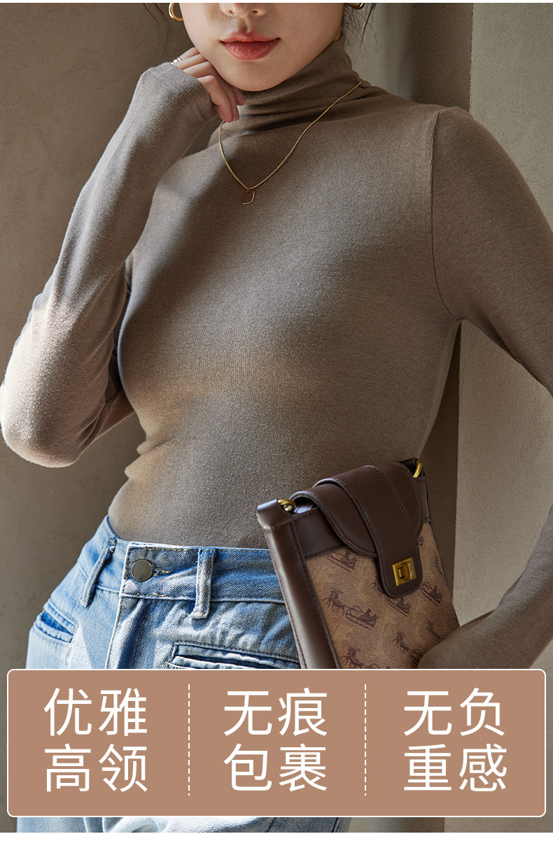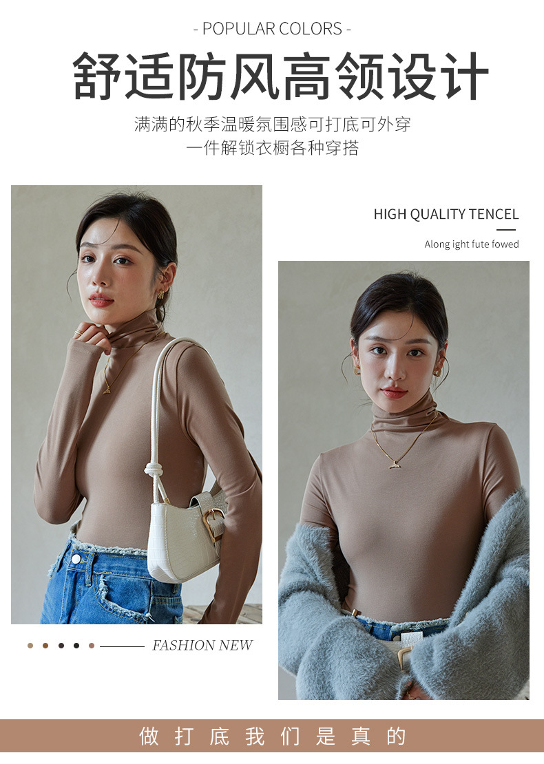 240克莫代尔高领打底衫女2025春秋季新款内搭外穿长袖t恤修身上衣秋季新款内搭