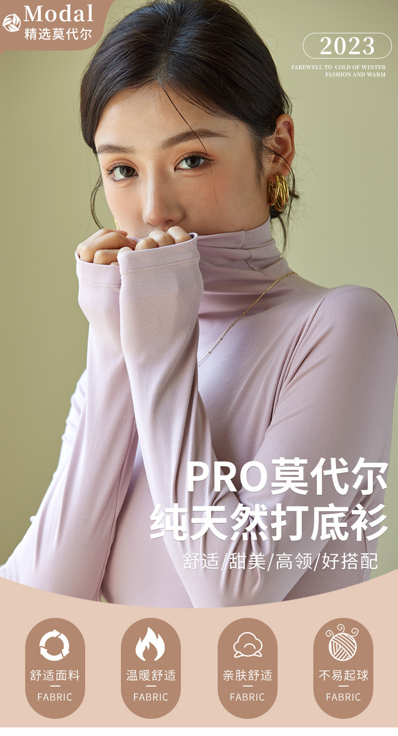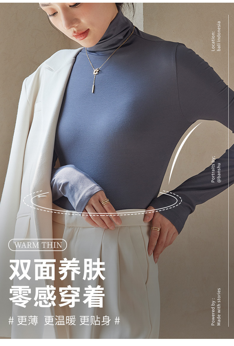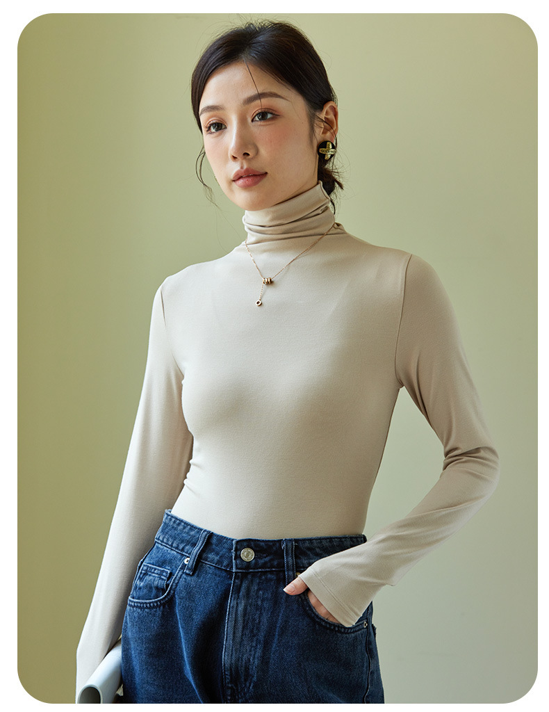 240克莫代尔高领打底衫女2025春秋季新款内搭外穿长袖t恤修身上衣秋季新款内搭