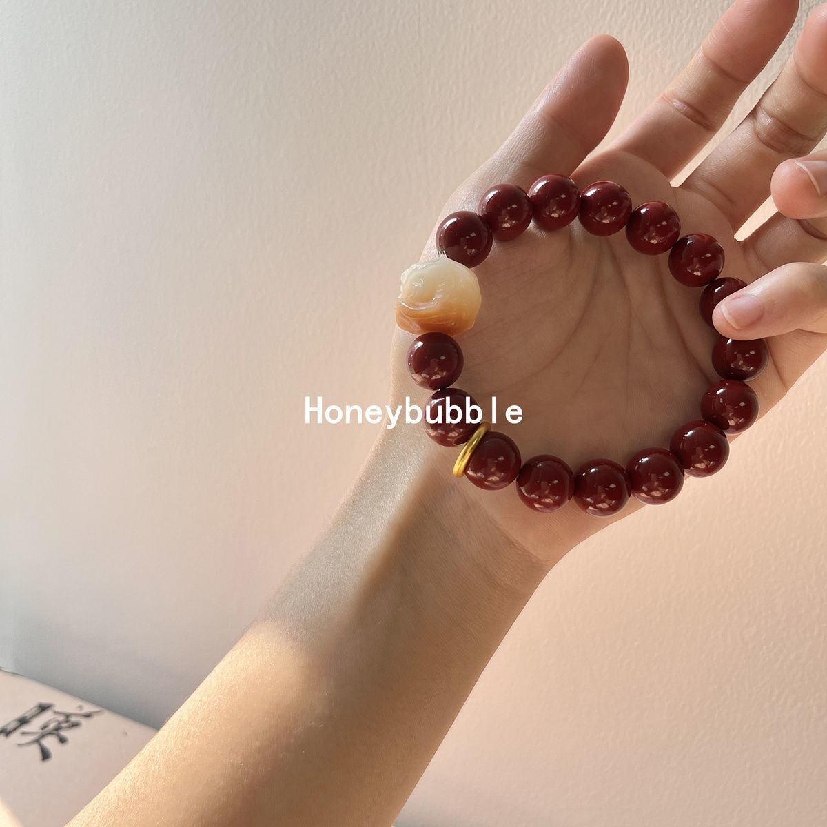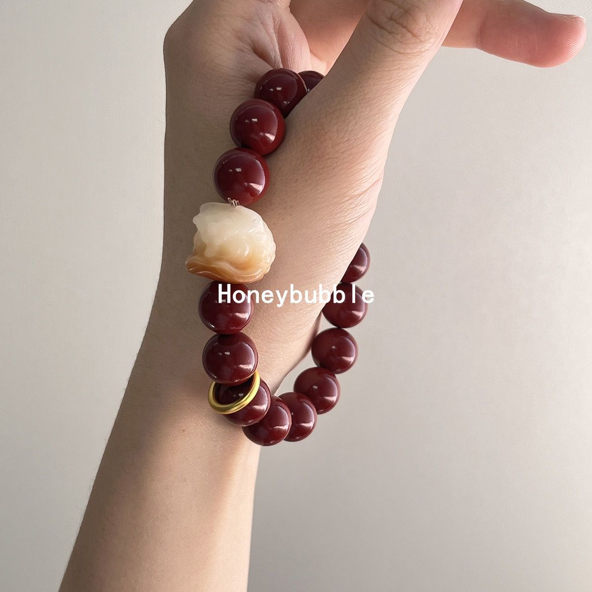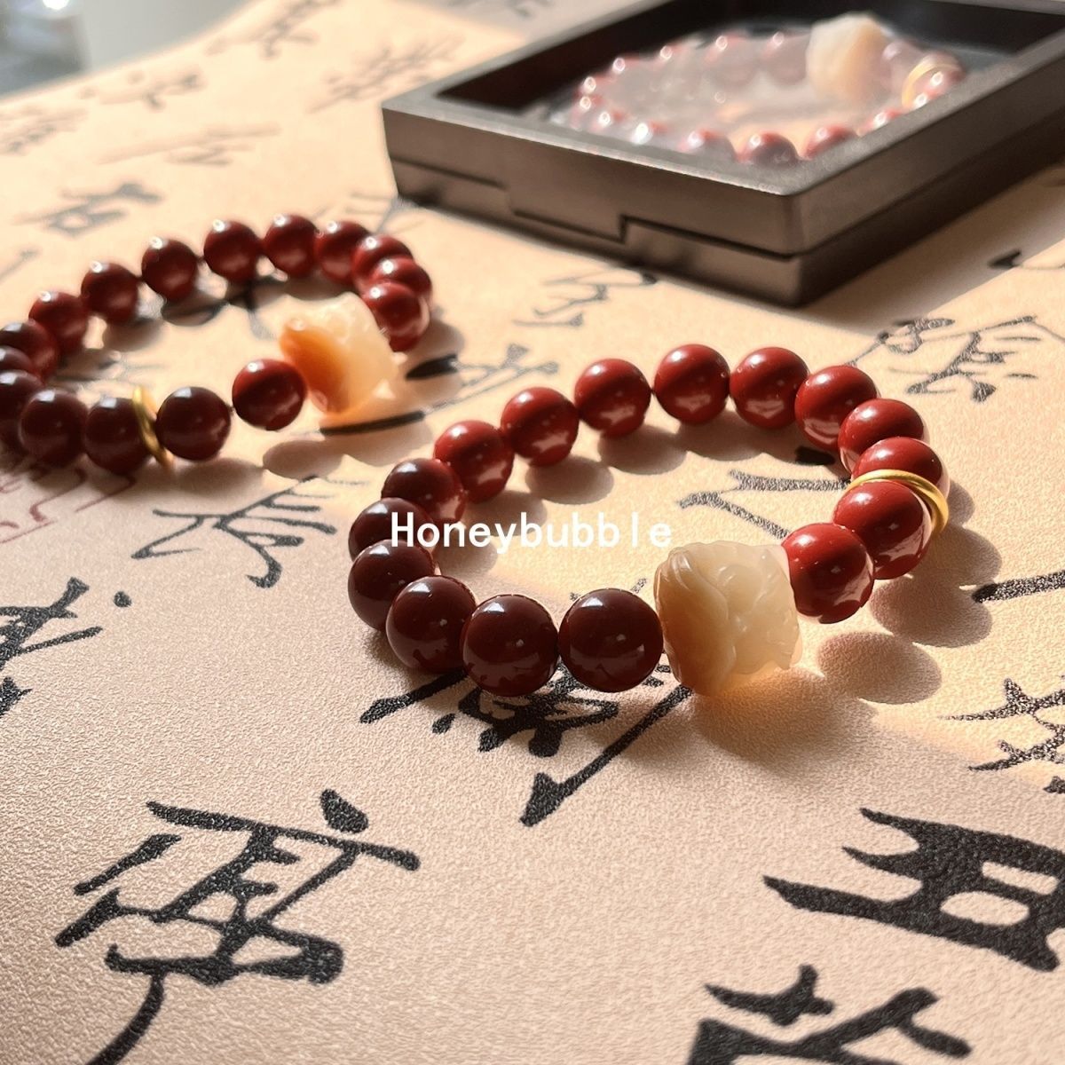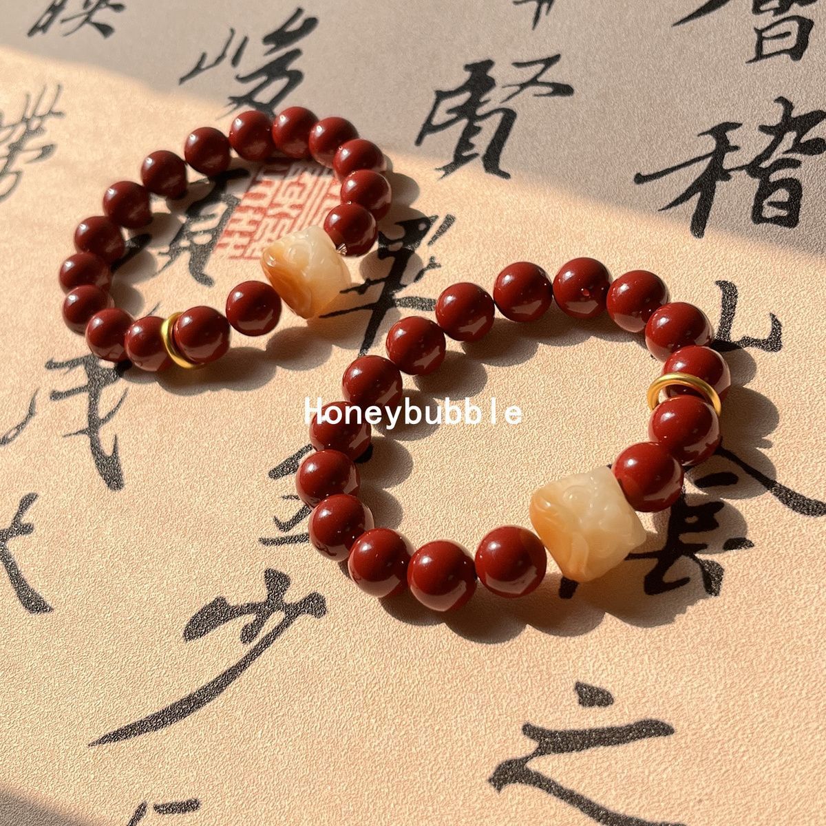 「限时9.9元包邮!琉璃醒狮手串」吉祥如意焦糖菩提俏色醒狮手链 红色本命年手串情侣时尚饰品