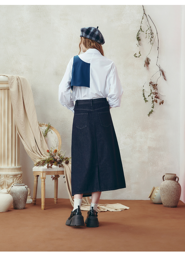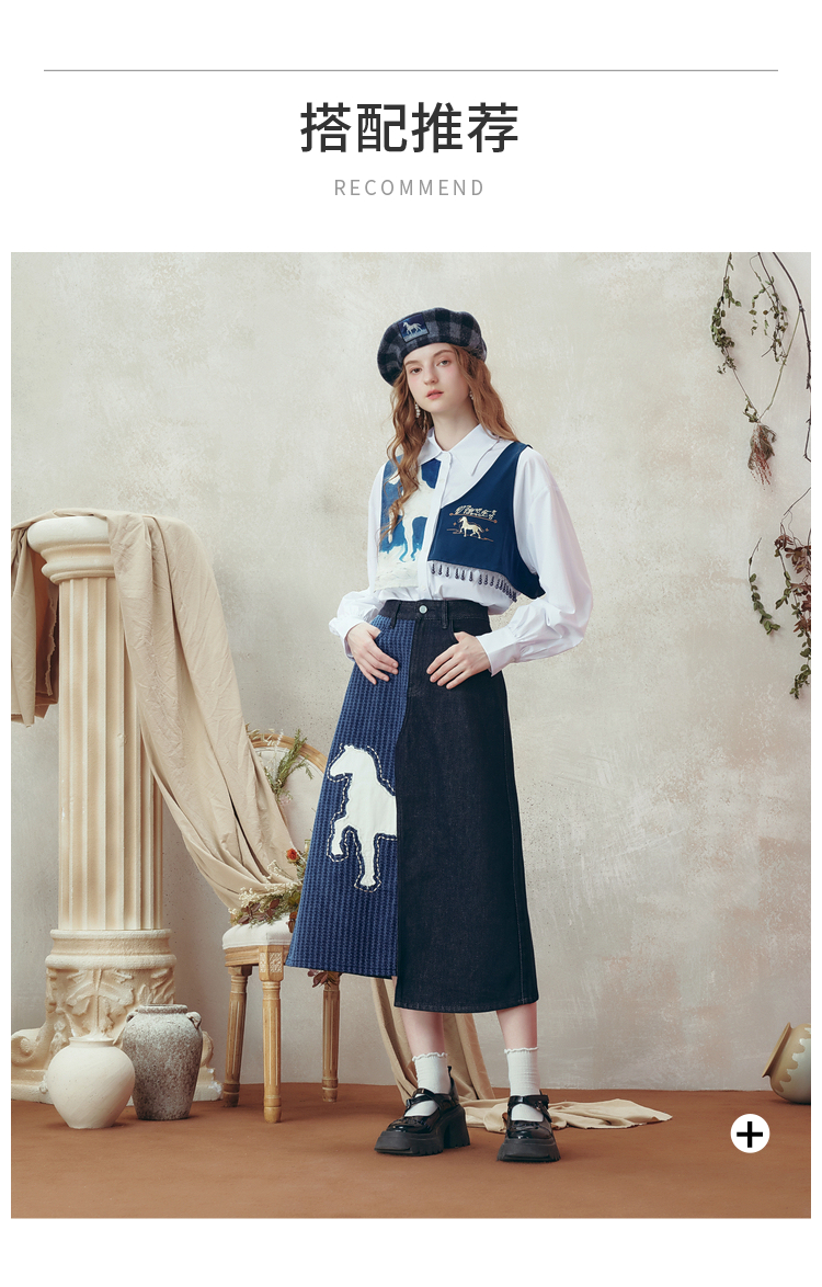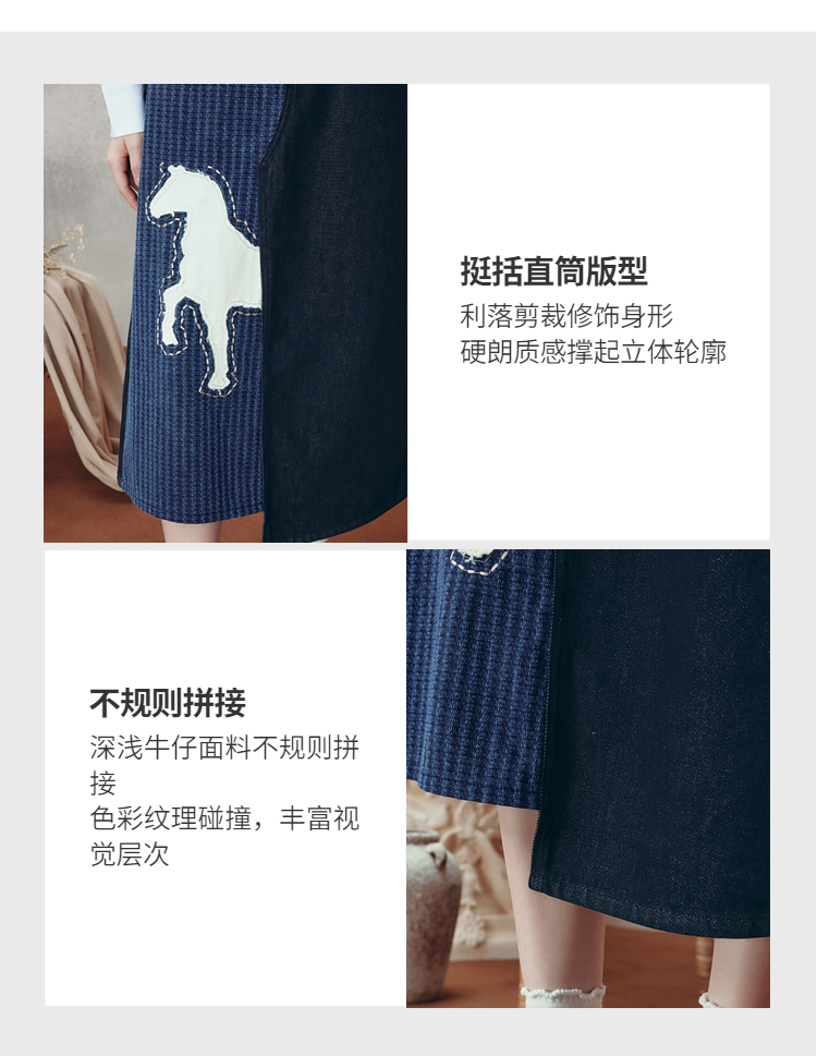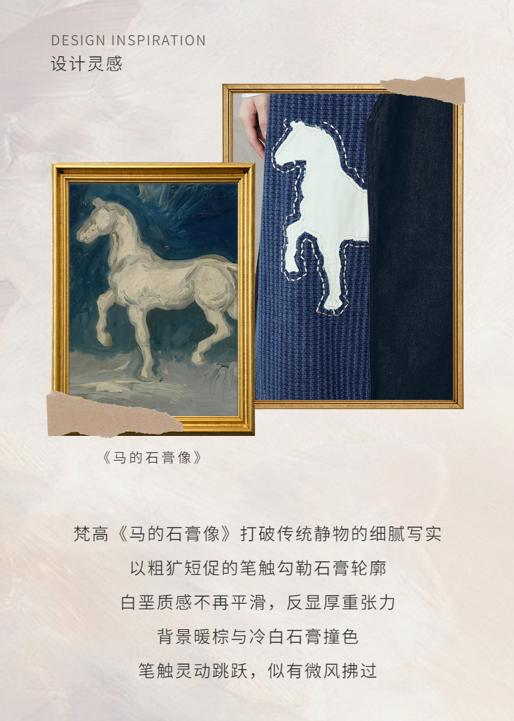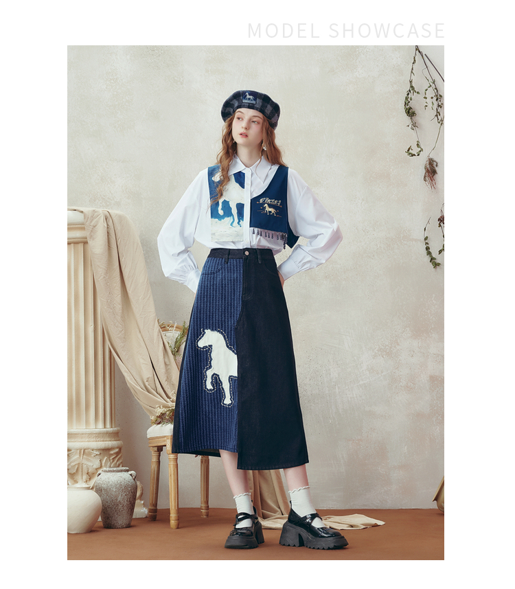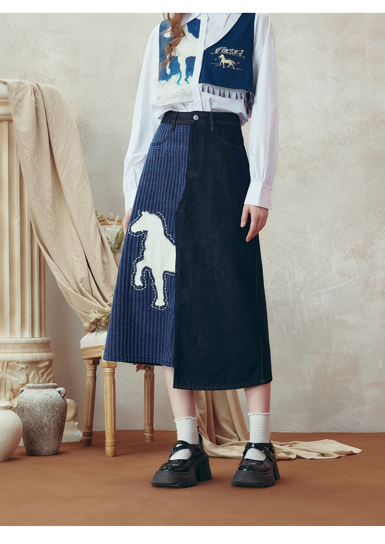 两三事梵高文艺 和风暮雨 2025冬季新款动物贴布绣拼布牛仔半身裙
